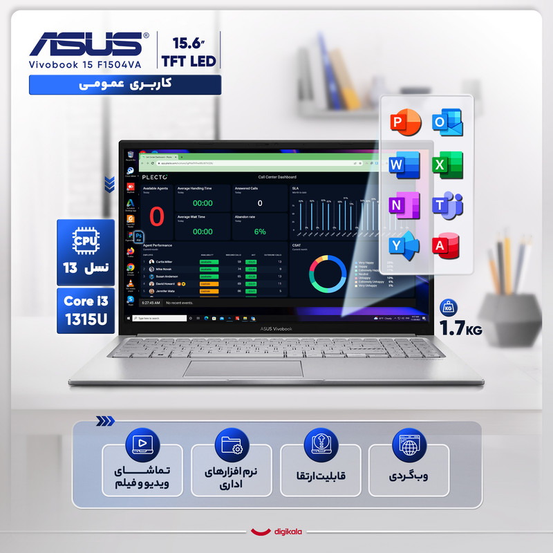 لپ تاپ 15.6 اینچی ایسوس مدل Vivobook 15 F1504VA-NJ1213-i3 1315U 4GB 256SSD