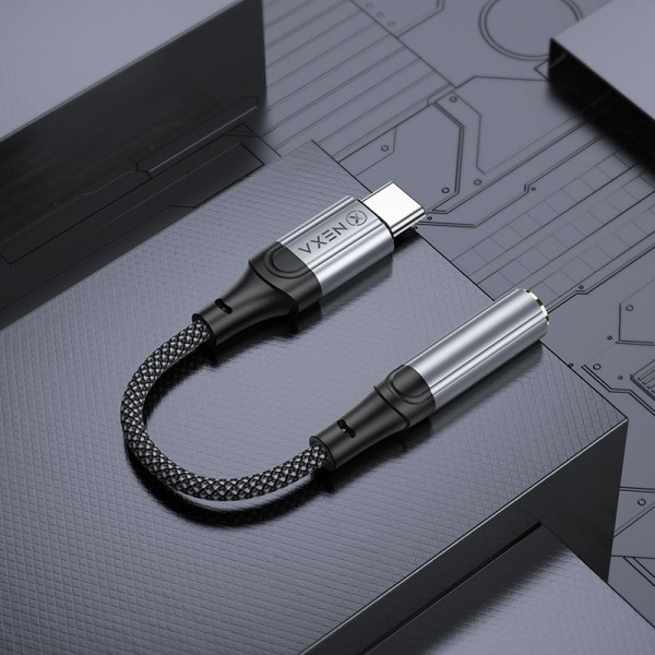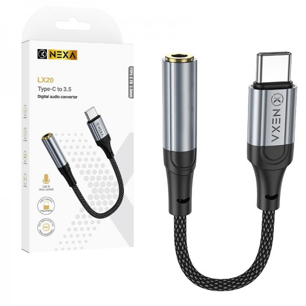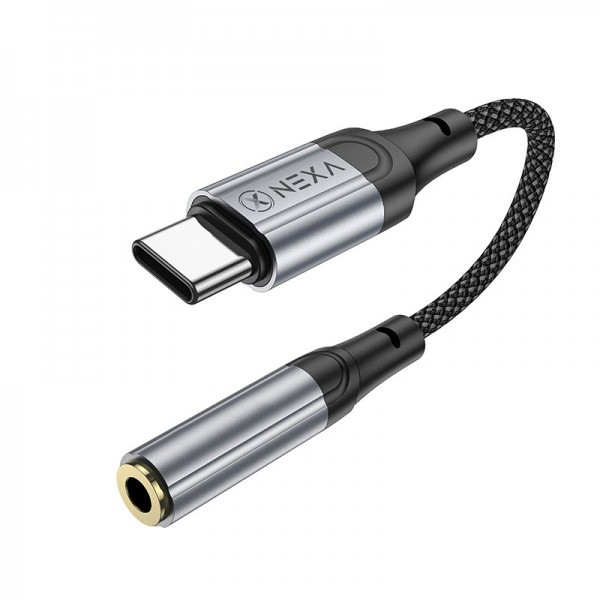 کابل تایپ سی به جک 3.5 میلی متری نکسا طول 12 سانتی متر مدل LX20 تبدیل سوکت تایپ سی به جک 3.5 میلی متری مادگی