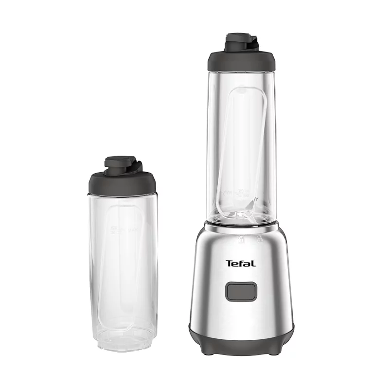 شیکر تفال، توان مصرفی 300 وات، دارای دو پارچ طلقی هر کدام ظرفیت 600 میلی لیتر، بدنه تمام استیل، دارای چهار عدد تیغه از جنس استیل، طراحی کوچک و کاربردی، طراحی و مهندسی در کشور فرانسه مونتاژ نهایی در کشور چین