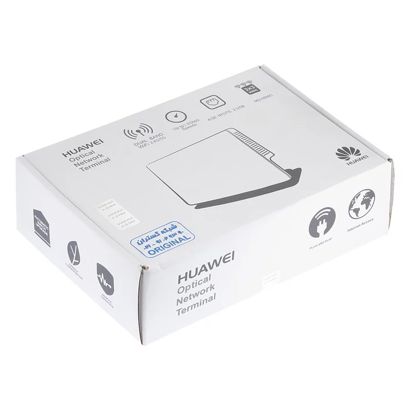 مودم فیبر نوری HUAWEI با ورودی فیبر نوری SC-UPC و خروجی 4 عدد پورت شبکه 10/100/1000 . قدرت آنتن دهی بالا (5 آنتن 2 دسی بل داخلی) همچنین قابلیت VOIP را نیز داراست. بهمراه 1 خروجی تلفن(FXS) این مودم از جدید ترین محصولات شرکت HUAWEI بوده و از کیفیت بسیار بالایی برخوردار است.