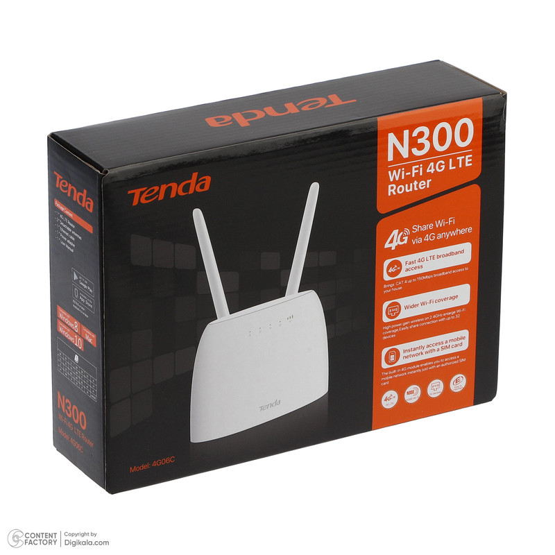 4G/3G standards FDD LTE,TDD-LTE,WCDMA Wi-Fi standards 802.11b/g/n Wi-Fi frequency 2.4GHz Wi-Fi speed 2.4GHz:300Mbps Wi-Fi transmit Power 2.4GHz:up to 20dBm Interface 1 × 10/100 Mbps LAN/WAN Port 1 × 10/100Mbps LAN Port 1xTel Port 1 × 2FF SIM Card Slot Button Power on/off WPS/Reset Antenna 2 detachable 4G/3G/2G Antennas 2 Internal Wi-Fi Antennas LED indicator Power Wi-Fi LAN Internet 4G/3G/2G Signal strength(3 Bars) ابعاد:185x126x60mm(LxWxH) – نوع WAN 4G/3G/2G or Wired 4G/3G Features Auto-APN Auto dial-up Roaming SMS(Send/Receive/Delete) VoLTE/CSFB USSD Data limted PIN Management Wi-Fi functions Broadcast and Hide Wi-Fi name Guest network Wi-Fi schedule Wi-Fi security WEP,WPA-PSK, WPA2-PSK, WPA/WPA2 Software features APP/Local/remote management Parental control DHCP(DHCP Server and Client) Virtual Server(UPnP/DMZ/Port Forwarding) DDNS(DynDns, 88ip) VPN(PPTP Client/L2TP Client/PPTP Server) Firewall QOS Upgrade firmware from local or OTA IPV4/IPV6 TR069