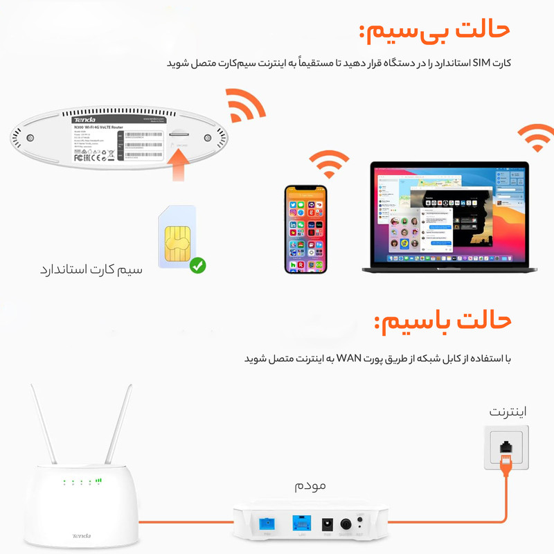RJ-45 LAN, RJ-45 WAN, RJ-45 WAN/LAN, شیار سیم کارت