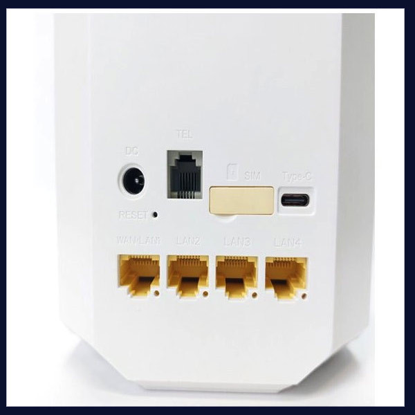 RJ-45 WAN/LAN, USB Type-C, شیار سیم کارت