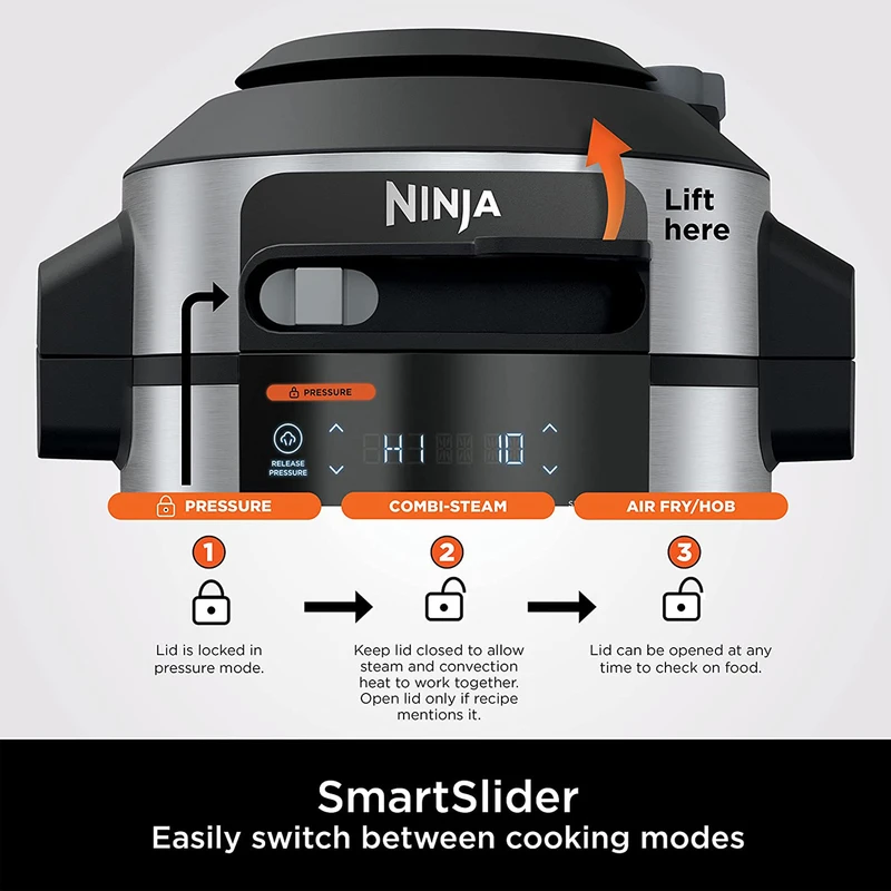 دارای فناوری SmartLid Slider / دارای برنامه Combi-Steam (بخارپز و هواپز همزمان) / دارای تکنولوژی Smart Cook پخت هوشمند / برنامه های پخت Pressure ، Steam Meals ، Steam Air Fry ، Steam Roast ، Steam Bake ، Steam Bread ، Air Fry ، Grill ، Bake ، Dehydrate ، Prove ، Sear/Saute ، Steam ، . Slow Cook ، Yogurt ، Keep Warm /