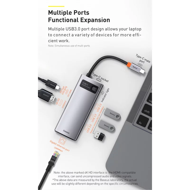 گاهی اوقات نیاز به درگاهی داریم که روی لپ تاپ، PC یا… وجود ندارد و یا حتی اگر هم وجود دارد اشغال است. از طرفی با وجود باریکتر شدن هر روزهی لپ تاپها هم شاهد کم شدن پورتهای روی بدنه هستیم که ما را با مشکل شدید کمبود پورت مواجه کرده است. هاب 8 پورت CAHUB-CV0G محصولی از کمپانی بیسوس است که در مجموع 8 پورت متفاوت و پرکاربرد را در اختیار شما میگذارد. با این هاب و با داشتن یک درگاه تایپ سی میتوانید دستگاههای بیشتری را به سیستمتان متصل کنید و محدودیتی نداشته باشید.