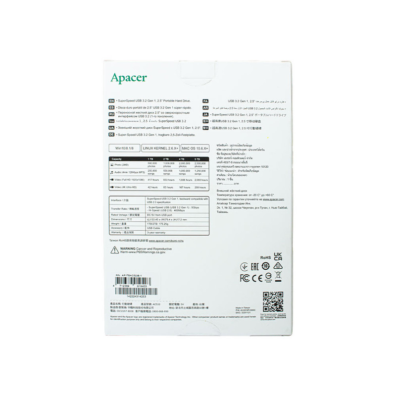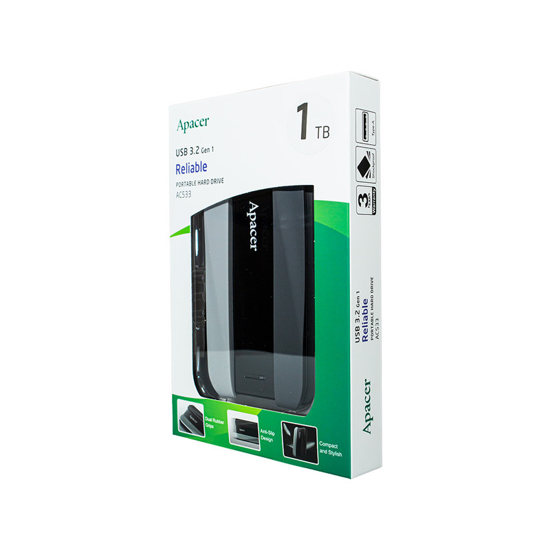 دستگیره های لاستیکی دوگانه AC533 محافظت ایمنی برای محیط بیرونی، کاهش نیروی ضربه و کاهش خطر آسیب دیدگی هارد دیسک را فراهم می‌کند و به کاربران اجازه می‌دهد هنگام حمل هارد خود در دنیای واقعی احساس امنیت کنندهارد دیسک قابل حمل AC533 USB 3.2 Gen 1 در سه رنگ چشم نواز عرضه می شود: قرمز گارنتی، آبی پر جنب و جوش و مشکی. رنگی را انتخاب کنید که با سلیقه شما مطابقت داردمدل‌های با ظرفیت بزرگ AC533 تا 5 ترابایت فضای ذخیره‌سازی را برای نیاز به فضای ذخیره‌سازی انبوه شما مانند فایل‌های حجیم، تماشای فیلم‌های HD و یا مرور مجموعه‌ تصاویر در حال حرکت، ارائه می‌کنند.هارد دیسک قابل حمل AC533 USB 3.2 Gen 1 با رابط استاندارد USB 2.0 سازگار است. چراغ‌های LED دو رنگ به ترتیب وضعیت انتقال USB 3.0 (آبی) یا USB 2.0 (قرمز) را نشان می‌دهند و به وضوح حالت فعلی درایو را شناسایی می‌کنند. کاربران می‌توانند با یک نگاه وضعیت را تعیین کنند.