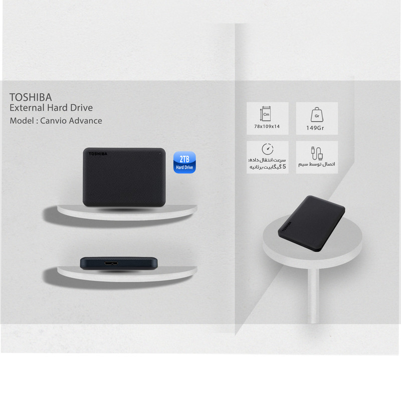 امروزه با پیشرفت تکنولوژی، لوازم ذخیرهسازی قابلحمل نیز پیشرفتهای زیادی داشتهاند. بسیاری از افراد میخواهند بخشی از اطلاعات شخصی خود را همیشه و همه جا همراه خود داشته باشند. یکیاز بهترین وسیلهها برای اینکه اطلاعات را بتوانیم همیشه همراه داشته باشیم، هارد اکسترنال قابل حمل است. توشیبا یکی از شرکتهایی است که در این زمینه فعالیت دارد. یکیاز محصولات این شرکت، هارد اکسترنال توشیبا مدل Canvio Advance است که ظرفیت 2 ترابایتی دارد. این هارد قابلحمل با بهرهگیری از فناوری ذخیرهسازی توشیبا ژاپن و با بهرهمندی از چیپهای بسیار مقاوم و سریع که بهکاربر امکان ارتباط با درگاه USB 3.2 را میدهد، طراحی و تولید گردیده است. سایز هد این هارد 2.5 اینچی بوده و سرعت چرخش در این هارد 5400 دوربردقیقه است. این هارد دربرابر لغزش، شوک و گردوغبار مقاوم است که یک امتیاز بسیار ویژه برای این هارد محسوب میشود.