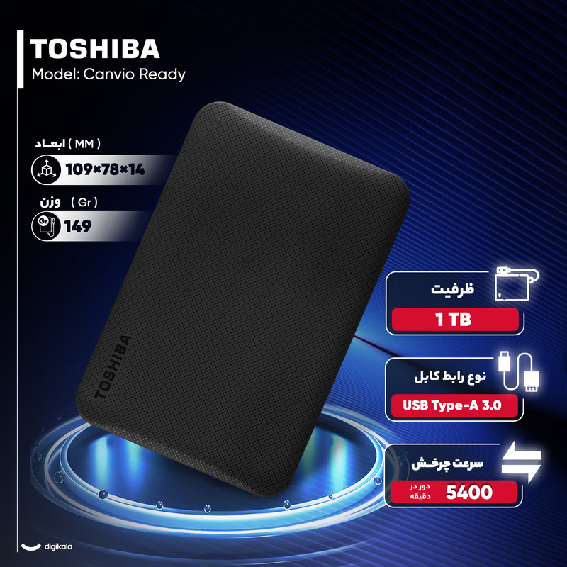 هارد اکسترنال توشیبا مدل Canvio Ready ظرفیت 1 ترابایت دارای رابط USB Type-A