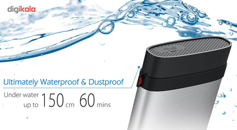 ضدضربه تا ارتفاع 122 سانتیمتر مقاوم در برابر فشار تا میزان 500 کیلوگرم ضدآب و ضد گردوغبار (دارای استاندارد IP68) مجهز به سیستم تعلیق پیشرفته برای هارددیسک داخلی حفاظت از اطلاعات و رمزگذاری روی آنها با استفاده از برنامه SP HDD Lock رمزگذاری پیشرفته 256 بیتی AES دمای عملیاتی هارددیسک: 5 درجه تا 55 درجه سانتیگراد