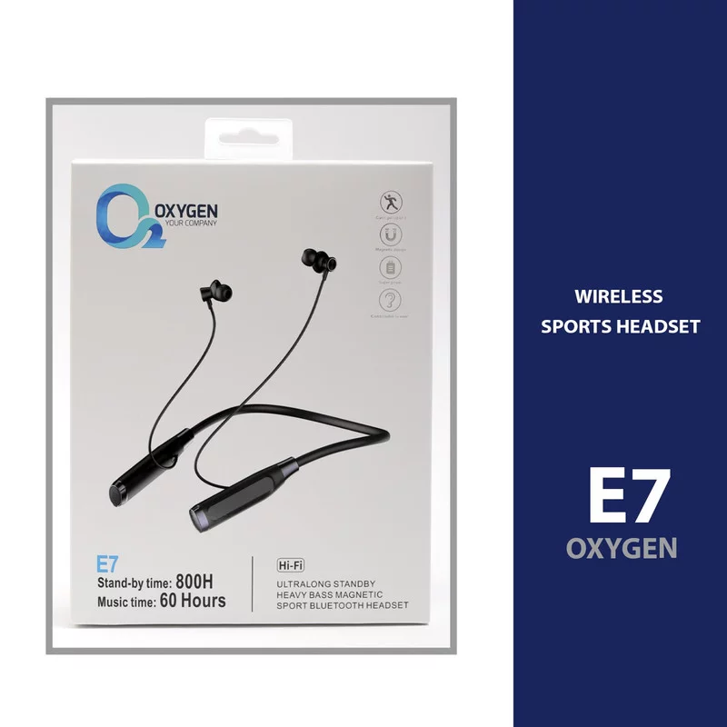 شرکت اکسیژن از هدست بلوتوثی گردنی جدید خود رونمایی کرده است که این هدست بی سیم E7 نام دارد و از ویژگی های کارآمدی برخوردار است. E7 با باتری 800 میلی‌آمپر ساعتی خود توان 60 ساعت پخش موسیقی یا 60 ساعت مکالمه با میکروفونی قوی را دارد و 800 ساعت امکان ذخیره باطری در حالت stand-by باعث شده این هدفون به یکی از محصولات خوب موجود در بازار تبدیل شود این هدفون کاملا استاندارد طراحی شده به طوری که به راحتی در گوش قرار می گیرد و در برابر کشیدگی مقاوم است. سری‌های هدست دارای خاصیت آهن ربایی می‌باشد و در صورت عدم استفاده می‌توانند به هم متصل شوند. همچنین این مدل با بلوتوث نسخه 5.3 می‌تواند تا محدوده 10 متر به شما شعاع عملکرد مناسبی را بدهد و فقط به 2 ساعت زمان برای شارژ شدن نیاز دارد. نکته آخر اینکه این باتری از طریق پورت USB Type-C شارژ می‌شود.