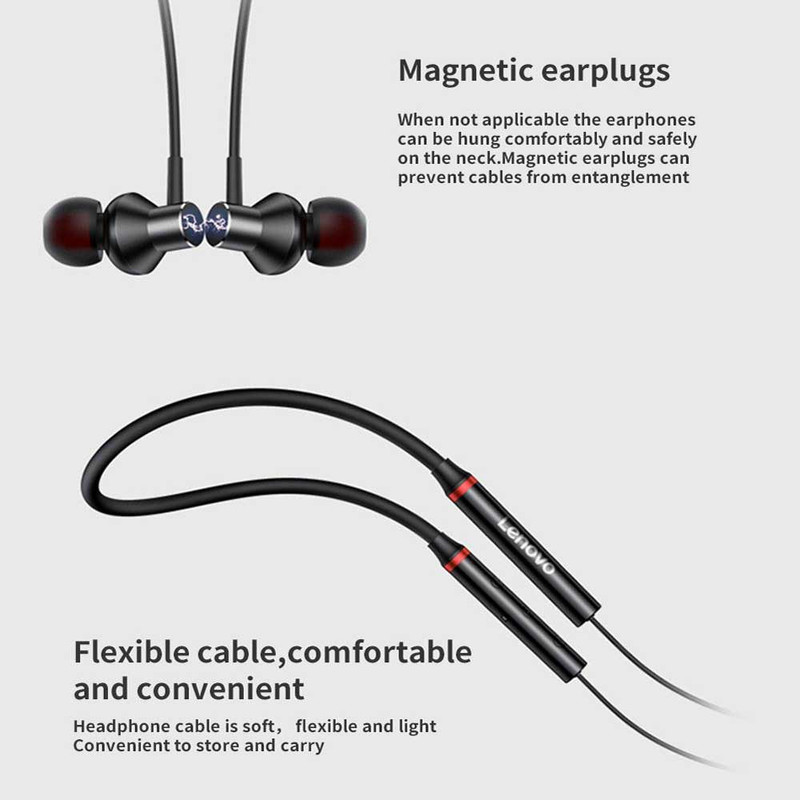 کمپانیی Lenovo یکی از معتبر ترین و خوش نام ترین کمپانی های فعال در زمینه لوازم برقی و تکنولوژی می باشد که بسیاری از محصولات آن در کشور ما به فروش می رسد. هندزفری بلوتوث HE05x محصولی از این کمپانی بوده و به صورت دور گردنی و ورزشی طراحی شده است. دو سری این محصول به وسیله یک تل سیلیکونی به هم متصل شده اند و این امر باعث شده تا به راحتی بر روی گردن شما بماند. تل این محصول به گونه ای طراحی شده که به کاربر این امکان را می دهد تا بتواند به راحتی آن را به هر حالتی که می خواهد در بیاورد. سری های هندزفری Lenovo HE05x به صورت تو گوشی طراحی شده اند و زاویه ای 45 درجه دارند و دارای سری های سیلیکونی می باشند تا به راحتی داخل گوش قرار بگیرد و دقیقاً بر اساس ارگونومی گوش طراحی شده تا کاربر در راحت ترین حالت ممکن به گوش دادن موسیقی بپردازد. همان طور که اشاره شد، سری های این محصول دارای زاویه ای 45 درجه بوده که باعث شده تا هندزفری بدون هیچگونه مزاحمتی داخل گوش کاربر قرار گیرد و هرگز از گوش آن جدا نشود. بر روی بدنه هندزفری HE05x یک قسمت کنترل قرار دارد که شامل 3 کلید فیزیکی بوده و وظیفه آن ها تغییرات موسیقی و ولوم، مدیریت تماس ها و پخش و قطع آهنگ می باشد و این امر بدون نیاز به منبع پخش (برای مثال: خود گوشی) انجام می پذیرد. یکی از نقاطی که می توان دقت کمپانی لنوو را در آن مشاهده کرد دو سری تل این محصول می باشد ، زیرا بر روی هر دو سر یک قسمت ضخیم تر قرار داده تا تعادل این محصول حفظ شود و فرم قرینه هندزفری کمک می کند تا بتوانید بدون جابجا شدن و متمایل شدن هندزفری به یک سو، از آن استفاده نمایید. یکی از دغدغه های امروز دزدیده شدن گوشی همراه به هنگام مکالمه است که با استفاده از این محصول می توانید با خیال راحت مکالمه ای لذت بخش داشته باشید، در حالی که گوشی درون جیب شما است. در طراحی این هندزفری از یک میکروفون HD استفاده شده که باعث شده کاربر تجربه یک مکالمه شفاف و بدون نویز را تجربه کند. هندزفری بلوتوث Lenovo HE05x Hanging دارای یک باتری داخلی بوده که در مدت زمان 2 ساعت به شارژ کامل خود رسیده و بعد از آن قادر است به مدت زمان 8 ساعت برای موسیقی و مکالمه به همراه شما باشد و البته این نکته قابل ذکر است که این مدت زمان برای زمانیست که با ولوم 50 درصد به گوش دادن موسیقی بپردازید.