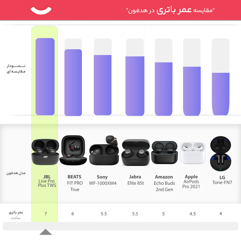 JBL Live Pro Plus با ظاهری فوقالعاده زیبا و شیک از جذاب ترین کارهای این کمپانی شناخته شدهاست.طراحی ایرفون های JBL از نوع ارگونومیک بوده و درون گوش بسیار راحت است. همچنین با توجه به گیره های سیلیکونی موجود در این ایرفون، ایرفون در گوش ثابت و مطمئن قرار میگیرد.JBL Live Pro Plus همچون بسیاری دیگر از ایرفون های چند وقت اخیر بازار، این محصول جدید کمپانی JBL نیز به شما این امکان را میدهد که تنظیمات صدا را بر اساس سلیقهی خود تغییر دهید تا بهترین تجربهی شنیداری را دریافت کنید. راجب کیفیت صدای باید بگوییم این ایرفون، صدا را به صورت کاملا واضح و شفاف پخش میکند. JBL Live Pro Plus با پشتیبانی صدا در بازه فرکانسی 10 هرتز تا 20000 هرتز ، توانایی پخش یک صدای شفاف و باکیفیت را دارد.ایرفون JBL Live Pro Plusنه تنها جلوی صداها را میگیرد، بلکه دارای یک حالت هوشمند است که اجازه میدهد صداهای اطراف را بهتر هم بشنوید. در واقع برای گفتگو با آدمهای اطراف، حتی نیازی نیست که این ایرفون را از گوش خود بیرون بیاورید. تکنولوژی حذف صدای مزاحم محیط یا همان Active Noise Canceling روی این مدل از ایرفون بلوتوثی JBLقرار دارد که برای انجام مکالمات دارای کیفیت بسیار مناسبی است و میتوانید مکالمات روز مره خود را بدون هیچ گونه نویز با آن انجام دهید.ایرپاد JBL Live Pro Plus دارای یک کیس شارژ همراه با باطری لیتیوم یونی است که با یک بار شارژ کامل میتوانید تا 28 ساعت از این ایرپاد استفاده کنید. به صورتی که 7 ساعت آن شارژ خود ایرفون و 21 ساعت دیگر از کیس آن تامین میشود. JBL Live Pro Plus از شارژ بیسیم Qi پشتیبانی میکند و شما میتوانید بیش از 7 ساعت از ایرفون خود استفاده کنید. برای شارژ کردن ایرفون با استفاده از کیس شارژ باید آن را داخل کیس شارژ قرار دهید و برای شارژ کردن خود کیس نیز باید آن را با کابل Type-C به شارژ بزنید. ایرفون JBL Live Pro Plus بهلطف بهرهمندی از گواهینامهی IPX4 در برابر نفوذ آب و عرق مقاوم است که خیالتان را از بابت آسیب دیدن به دستگاه هنگام استفاده در هوای مرطوب راحت می کند.