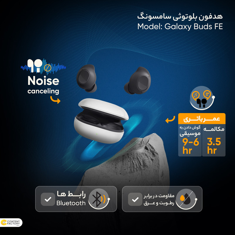 هدفون بلوتوثی سامسونگ مدل Galaxy Buds FE عضوی دیگر از خانواده در حال گسترش فن ادیشن کرهایها است که با شکستن قوانین محصولات میانرده، آمده است تا خودی در بازار جهانی نشان دهد. این هدفون در بخش طراحی گوشیها دستخوش تغییرات بزرگی شده است تا حس خوب تغییرات را به رخ همردهها بکشد. طراحی بالدار هدفونها، هدف بزرگی را دنبال میکند. سامسونگ با این طراحی جدید سعی دارد تا پایداری هدفون و حس امنیت بیشتری به کاربر بدهد. این طراحی نه تنها ثبات هدفون در گوش را تضمین میکند بلکه در زمان ضربهزدن و لمس برای اجرای فرامین مختلف، شاهد جابهجایی هدفونها در گوش نیستیم. همچنین بخش لمس هدفونها نسبت به دیگر بادزهای سامسونگ تا حدودی صافتر است تا از بازخوردهای ناخواسته و لمسهای اشتباه جلوگیری شود. با اینکه سامسونگ تلاش کرده تا قیمت Galaxy Buds FE را پایین نگه دارد اما صدای خروجی همچنان قدرتمند، واضح با بیس عمیق است. اما نباید فراموش کرد که این فن ادیشن جدید کرهایها به حذفنویز فعال یا ANC مجهز است. قابلیتی که بیش از 98 درصد از نویز محیط اطراف را مسدود میکند. هرچند یک حالت معکوس هم وجود دارد. با حضور میکروفونها بیرونی، صدای محیط با افزایش حجم در گوش شما پخش میشود که این قابلیت تنها در مدلهای رده بالای سامسونگ قابل استفاده بود. سامسونگ این مدل را با طول عمر 30 ساعت با شارژ بادزها و کیس شارژ تبلیغ کرده است اما خود بادزها تا 3.5 ساعت در مکالمه، تا 6 ساعت با ANC فعال و 9 ساعت بدون ANC موسیقی را پخش میکنند.