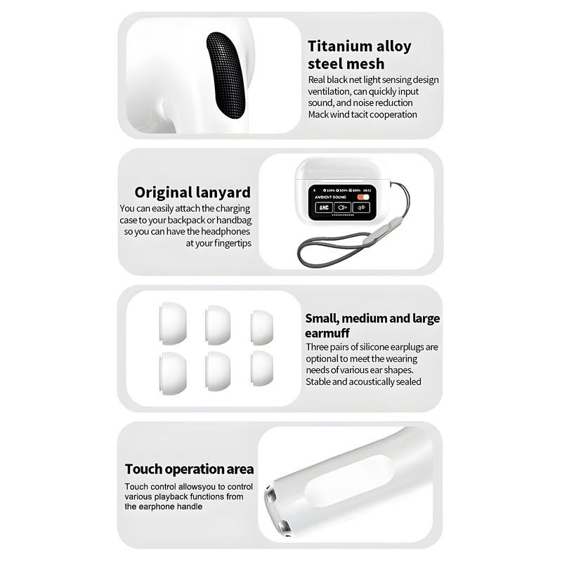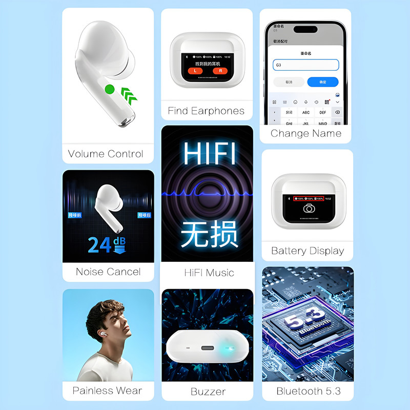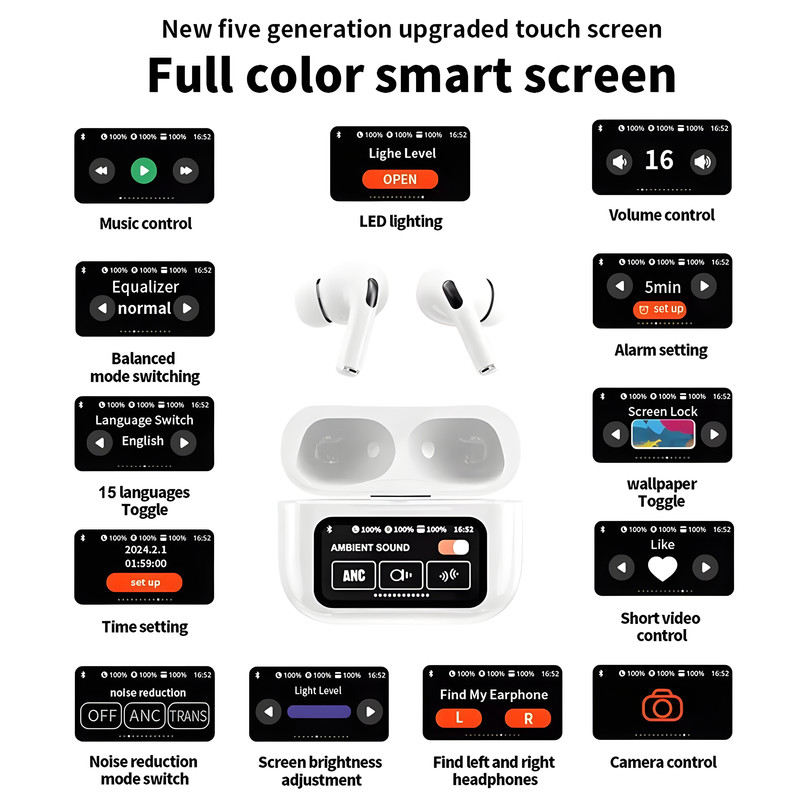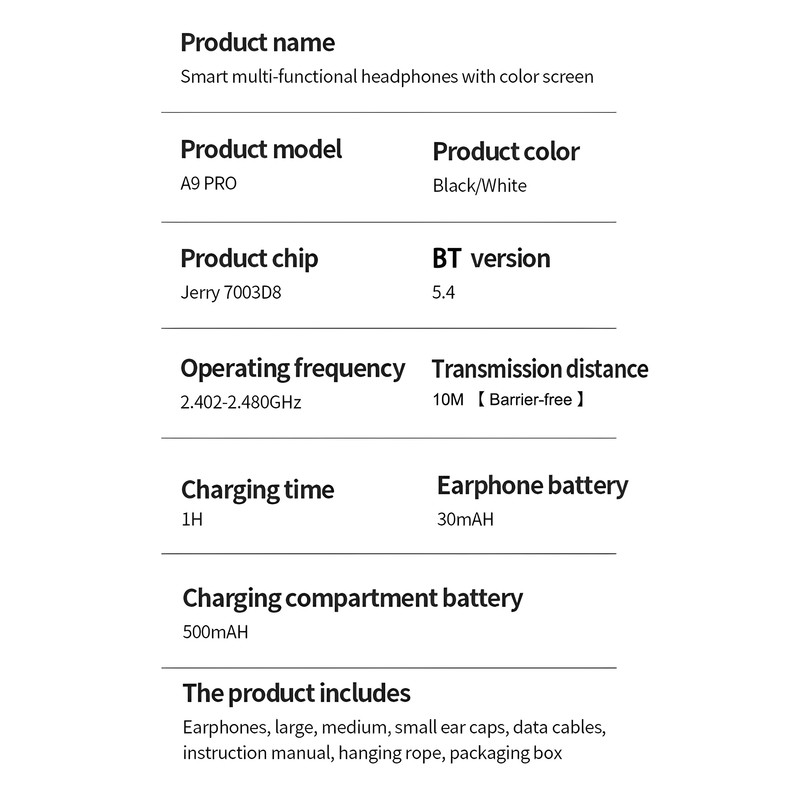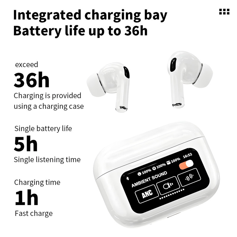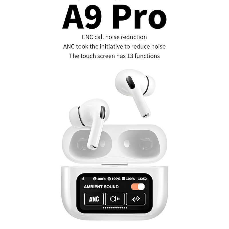 A9 Pro یک هدفون جذاب از نوع TWS (True Wireless Stereo) باکیفیت صدای عالی و طراحی مدرن، همراه صفحهنمایش تعبیهشده روی کیس آن هر فردی را به وجد خواهد آورد. طراحی کوچک و سبک آن با ابعاد 100×100×50 میلیمتر و بدنه پلاستیکی، راحتی استفاده در طولانیمدت را تضمین میکند.