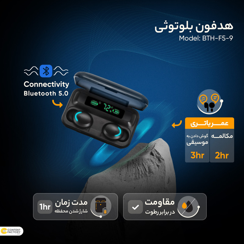 هدفون بلوتوثی مدل BTH-F9-5 یکی از اقتصادی‌ترین هدفون‌های سیم موجود در بازار است که نیازهای عمومی افراد مختلف را برطرف خواهد کرد. برگ برنده این هدفون بلوتوثی را می‌توان باتری قدرتمند 3500 میلی آمپر ساعتی دانست. این ظرفیت باتری باعث شارژدهی مناسب هدفون شده و در عین حال می‌تواند به عنوان پاوربانک هم مورد استفاده قرار بگیرد. کافیست وسایل الکترونیکی مانند گوشی موبایل را به درگاه USB محفظه متصل کنید تا محفظه هدفون تبدیل به پاور بانک شود و بتوانید وسیله مورد نظرتان را با کمک آن شارژ کنید. همچنین، هدفون بلوتوثی مدل BTH-F9-5 ابعاد کوچکی دارد و از پروتکل‌های,AVRCP,HSP,HFP A2DP پشتیبانی می‌کند. این هدفون وزن سبکی دارد و استفاده از پنل لمسی باعث شده بتوانید بدون نیاز به لمس و استفاده از گوشی موبایل،‌ آهنگ‌ها را عقب و جلو برده یا صدا را کم و زیاد کنید.