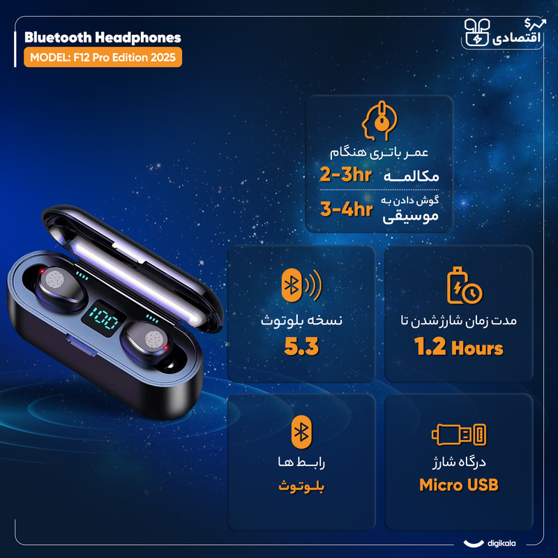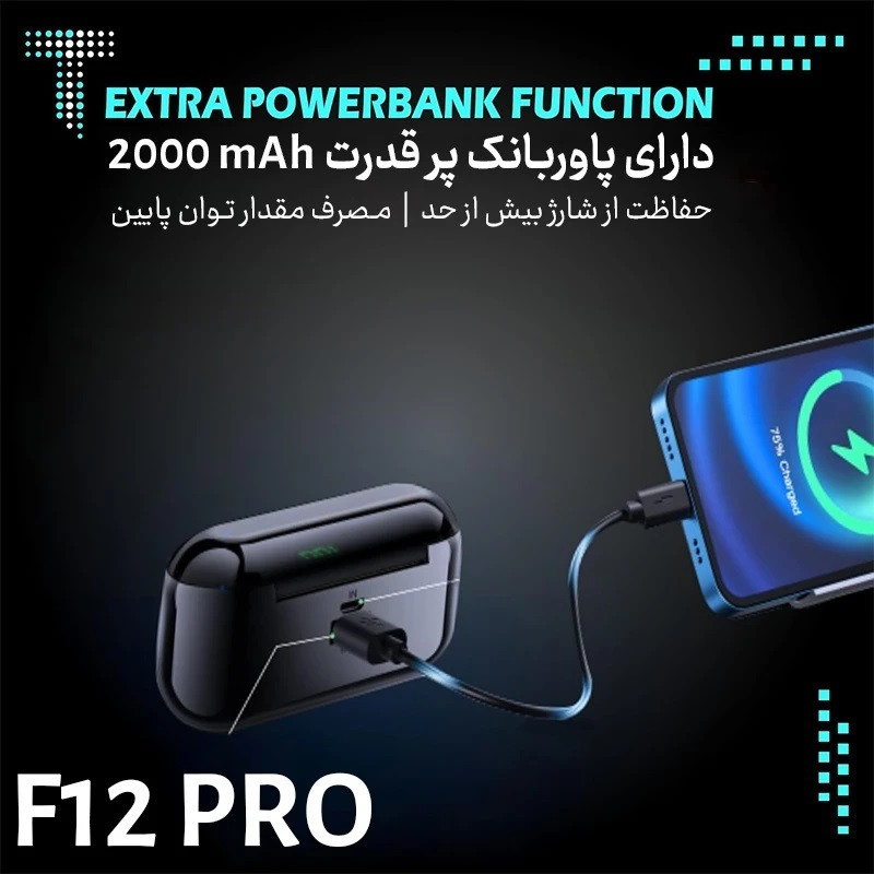 هدفون بی سیم مدل F12PRO Edition2025 با ظاهر زیبا و ظریف محصولی مناسب و یک هدیه عالی برای نزدیکانتان خواهد بود. هدفون های True Wireless Stereo که F12PRO Edition2025 نیز یکی از آنها می باشد، می توانند کیفیت صدای فوق العاده‌ای را با باس عمیق و تریبل شفاف تولید کنند. صدای استریو Hi-Fi و تماس های واضح، گوشی های بلوتوثی بی سیم و بلندگوهای 6 میلی متری بزرگ، همچنین با بیس قوی، شفاف، متعادل و عملکرد سه برابر برای بازتولید زنده صدای دریافتی و ارسالی شماست. هدفون بی سیم مدل F12PRO Edition2025 دارای فناوری حذف نویز CVC8.0 می باشد که موسیقی آرام و تماس های واضح حتی در محیط های پر سر و صدا را برای دو طرف مکالمه فراهم می کند. محفظه شارژ این هندزفری دارای یک باتری بزرگ و قوی 2000 میلی آمپر ساعتی و ظرفیت باتری گوشی 50 میلی آمپر ساعتی می باشد که تا 800 ساعت زمان آماده به کار(استندبای) خواهد داشت و زمان مکالمه و پخش موسیقی آن نزدیک به 4 ساعت با هر بار شارژ خواهد بود. خروجی صدای گوشی ها نیز بسیار واضح، شفاف، متعادل و دارای بالانس بسیار مناسب و استاندارد است. و در نهایت طراحی انحنادار کویل و ساختار با کیفیت اجزای آکوستیک این هندزفری باعث می شود تا صدایی غنی و خالص را تجربه کنید.