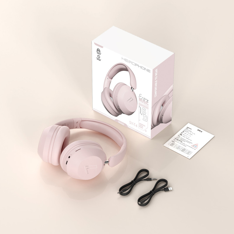 هدفون SY-T4 با طراحی مد ، ساده و ظریف یک مورد شیک و به روز است که با تنوع رنگ های خاص و کم اشباع محصولی منحصر بفرد و زیبا را برای شما به ارمغان می آورد . طراحی سبک 180 گرمی و اندازه جمع جور این هدفون باعث تجربه فشار تقریبا صفر شده و شما میتوانید ساعت ها حین لذت بردن از موسیقی و بازی بدون کوچک ترین احساس سنگینی و خستگی از آن استفاده کنید . با امکان تغییر سایز 6 حالته گوشی ها امکان استفاده برای تمامی افراد فراهم شده گوش بند های نرم و کاملا بسته بندی شده به شما این امکان را میدهند که بلا فاصله بعد از قرار گرفتن روی گوش صدای محیط را کاهش داده و تجربه لذت بخش تری از گوش دادن به موسیقی را برایتان فراهم سازند با جم کردن گوشی ها با داخل هدفون امکان حمل راحت تر محصول برای شما فراهم میشود و شما میتوانید آن را هرکجا که میخواهید با خود ببرید این هدفون مجهز به واحد درایور دینامیک دیافراگم بیولوژیکی 40 میلیمتری است و امکان تجربه گوش دادن HIFI واقعی را برای شما فراهم میسازد هم چنین امکان گوش دادن 360 درجه و سه بعدی به موسیقی در این دستگاه برای شما فراهم شده است با توجه به باتری 300 میلی امپر ساعتی این هدفون امکان استفاده 20 ساعته از این هدفون برای شما وجود دارد تا با خیال راحت از موسیقی لذت ببرید . با بهره گیری از Latency Technology به شما امکان غوطه ور شدن در میدان جنک و تجربه جدیدی از بازی های کامپیوتری را میدهد تا متفاوت از همیشه بازی کنید نسل جدید پردازنده وایرلس 5.3 به کار رفته در این هدفون باعث مصرف کمتر انرژی و قابلیت های ضد داخل آن امکان استفاده ای پایدار را به شما میدهد تا نهایت لذت را از گوش دادن به موسیقی یا بازی کردن ببرید