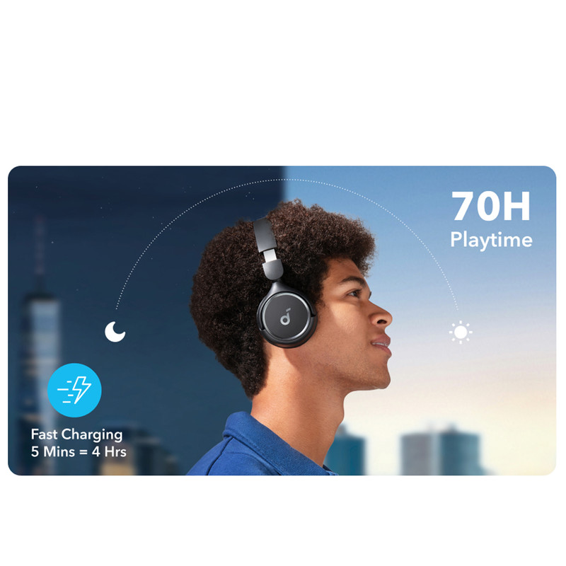 باتری قوی این هدفون، یکی از برجسته‌ترین ویژگی‌های آن است. با عمر باتری اعجاب‌آور 70 ساعت در حالت پخش موسیقی، کاربران می‌توانند بدون نگرانی از شارژ مجدد، از صدای مداوم لذت ببرند. همچنین، کابل شارژ USB-C و کابل AUX همراه، گزینه‌های اتصال متنوعی را در اختیار کاربر قرار می‌دهند. مقاومت در برابر رطوبت و عرق هم این هدفون را برای استفاده در شرایط مختلف، ازجمله ورزش و فعالیت‌های روزمره، مناسب کرده است.