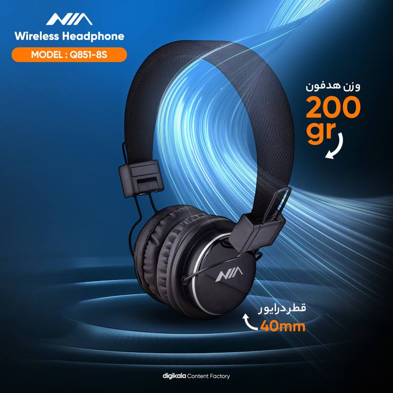 شرکت «NIA» بهتازگی محصولی را تحت عنوان «Q8-851S» روانه بازار کرده که درواقع یک هدفون بیسیم است که از طریق فناوری بلوتوث به تلفنهمراه یا پخشکننده صوتی متصل میشود. اگر تلفنهمراه یا پخشکننده صوتی شما از بلوتوث پشتیبانی نمیکند، جای هیچگونه نگرانی نیست. مهندسان شرکت NIA هدفون Q8-851S را به درگاه 3.5 میلیمتری صدا تجهیز کردهاند تا به کمک آن بتوان اقدام به اتصال باسیم کرد. جنس پوشش روی کاپ صدای این محصول از چرم مصنوعی است که باعث میشود هنگام استفاده بلندمدت از آن احساس خستگی به کاربر منتقل نشود. قسمت هدبند Q8-851S قابلیت تغییر ارتفاع را دارد که این ویژگی باعث میشود این هدفون گزینه مناسبی برای همه افراد باشد. روی کاپ سمت چپ این محصول یک کلید برای خاموش یا روشن کردن دستگاه به چشم میخورد. همچنین در کاپ سمت راست آن یک کلید برای اعمال فرمانهای پرتکرار تعبیه شده است. یک شیار کارت حافظه هم برای پخشموسیقی بدون نیاز به تلفنهمراه یا پخشکننده صوتی وجود دارد. میزان بیس این هدفون به گونهای است که در اولین استفاده از آن بدون شک شگفتزده خواهید شد.