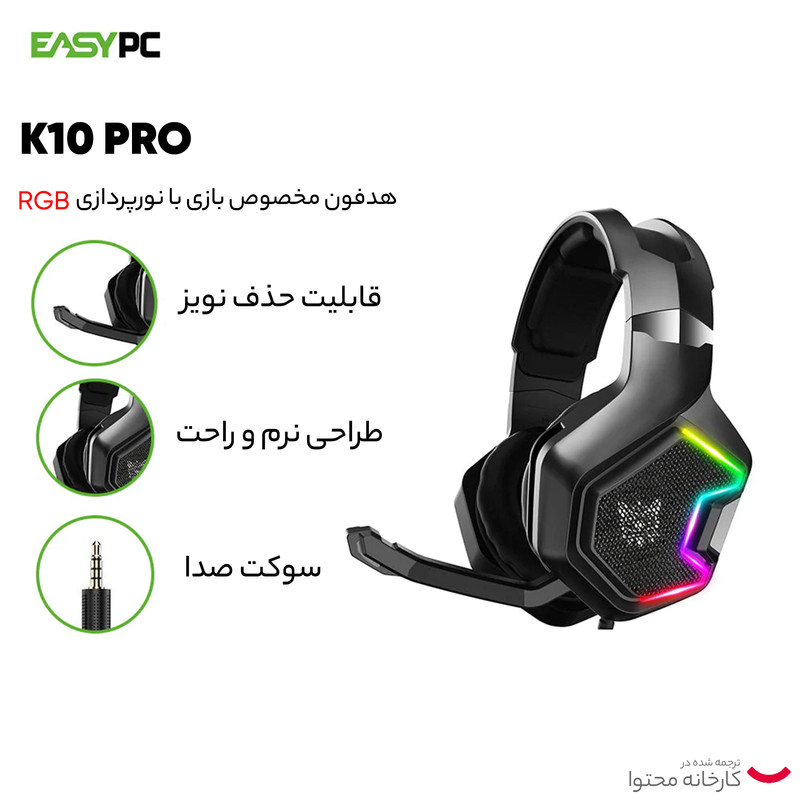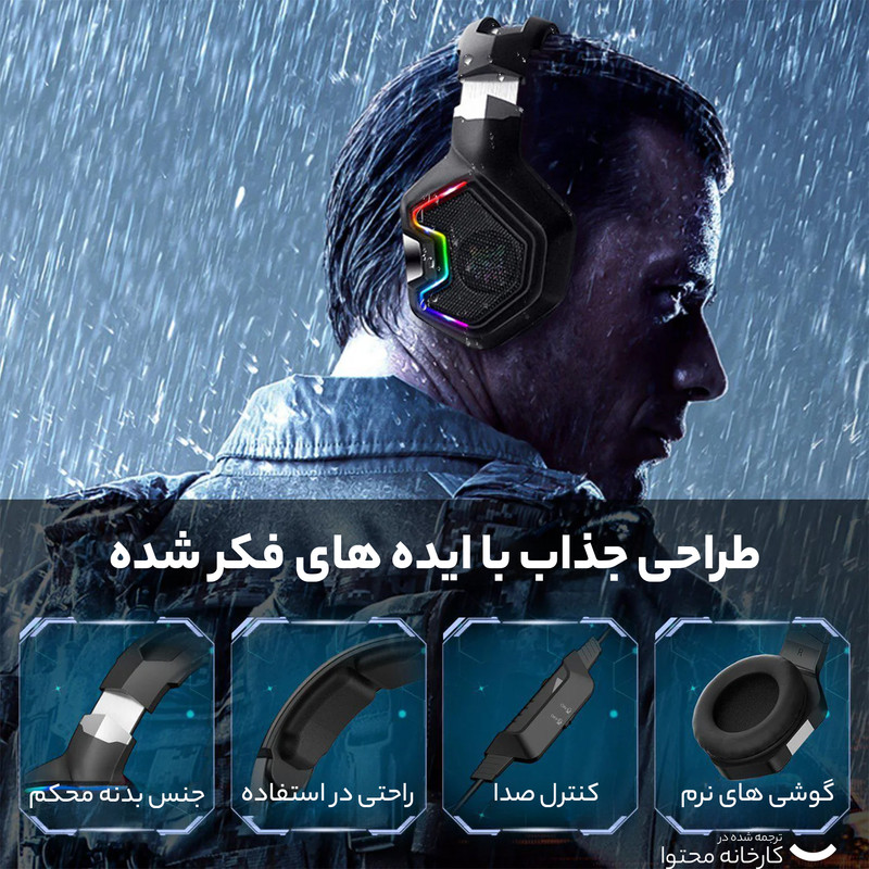 کاپ های تهیه شده از Memory Foam پخش صدای 7.1 surround دارای نورهای RGB در قسمت کاپ هدفون دارای میکروفون با تغییر زاویه تا 120 درجه دارای قابلیت Noise Canceling برای میکروفون قابلیت تنظیم اندازه هدبند سازگار با PS4, Xbox One, Nintendo Switch, 32-bit & 64-bit Win7/Win8/Win8.1/Win10/XP