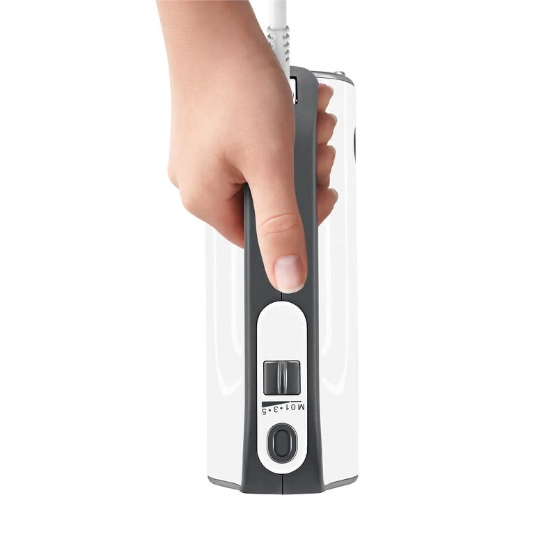 موتور پرقدرت با توان 850 وات، دور موتور متغییر با 5 سرعت قابل تنظیم، دارای پره های همزن نرم و سفت جهت تهیه سفیده تخم مرغ، پخت کیک و شیرینی و ….، قطعات پلاستیکی عاری از هرگونه مواد شیمیایی (BPA FREE)، سیم برق تلفنی، طراحی و مهندسی در کشور آلمان مونتاژ نهایی در کشور اسلوونی