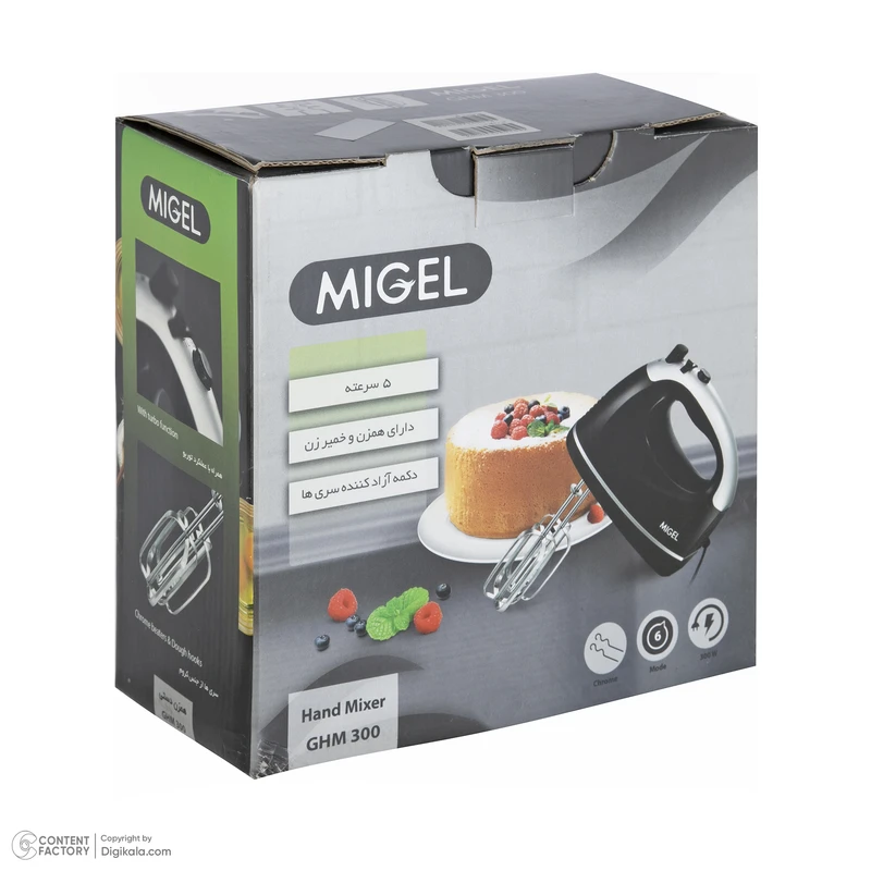 اگر اهل درست کردن کیک و شیرینی در خانه باشید میدانید که یکی از محصولات واجب آشپزخانه همزن برقی است. این محصول که در دو مدل دستی و پایهدار تولید میشود میتواند مواد مورد نیاز کیک یا به عنوان مثال خامه یا تخم مرغ را با سرعت مورد نظر شما هم بزند تا غلظت مورد نظر بهدست بیاید. در ادامه به مشخصات همزن میگل مدل GHM 300 خواهیم پرداخت.
