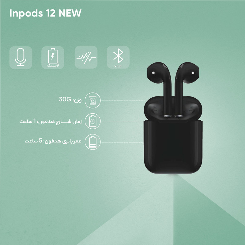 این محصول از جدید ترین مدل های ایرپاد سری inpods 12 می باشد . این ایرپاد با طراحی منحصر به فرد و زیبا مناسب گوش کردن به موزیک تماشا کردن فیلم و ورزش می باشد این محصول با طراحی زیبا و ارگونومیک به طور کامل در گوش قرار میگیرد و خیال شما را بایت افتادن و گم شدن راحت می کند. بدنه ضد خش و مات این ایرپاد آن از دیگر رقبای خود متمایز کرده است و عملکرد بسیار خوبی در برابر ضربه دارد. کیس این ایرپاد همانند پاور بانک عمل می کند و شما می توانید هر کجا که باشید آن را شارژ نموده . طراحی هدفون به‌این شکل است که پشت آن یک دکمه تعبیه شده است که علاوه بر نقش پاور، شما می‌توانید با یک بار ضربه روی دکمه، موسیقی را پخش یا قطع کنید و برای عوض کردن موزیک کافی است دکمه را 2 ثانیه نگه دارید. از ویژگی‌های حایز اهمیت مدل دستیارصوتی بوده که به هنگام دریافت تماس شماره دریافتی را به‌صورت تکی بازگو می‌کند و با فشردن دکمه پشتی به‌آن تماس پاسخ دهید. طراحی بسیار شیک و کیفیتی راضی کننده به‌این محصول کمک کرده که رده قابل قبولی را در بین این گجت‌ها به خود اختصاص دهد. جهت اتصال دو هدفون به یکدیگر ابتدا هر دو را روشن کرده ،پس از روشن شدن چراغ های چشمک زن یکی از هندزفری ها را دو بار کلیک کرده تا به هندزفری دیگر اتصال یابد پس از ان بلوتوث دستگاه را روشن کرده و جستجو نمایید و به یکی از هندزفری ها متصل شوید، لازم به ذکر است مکالمه به صورت تک هندزفری و پخش موزیک با هر دو هندزفری امکان پذیر است.