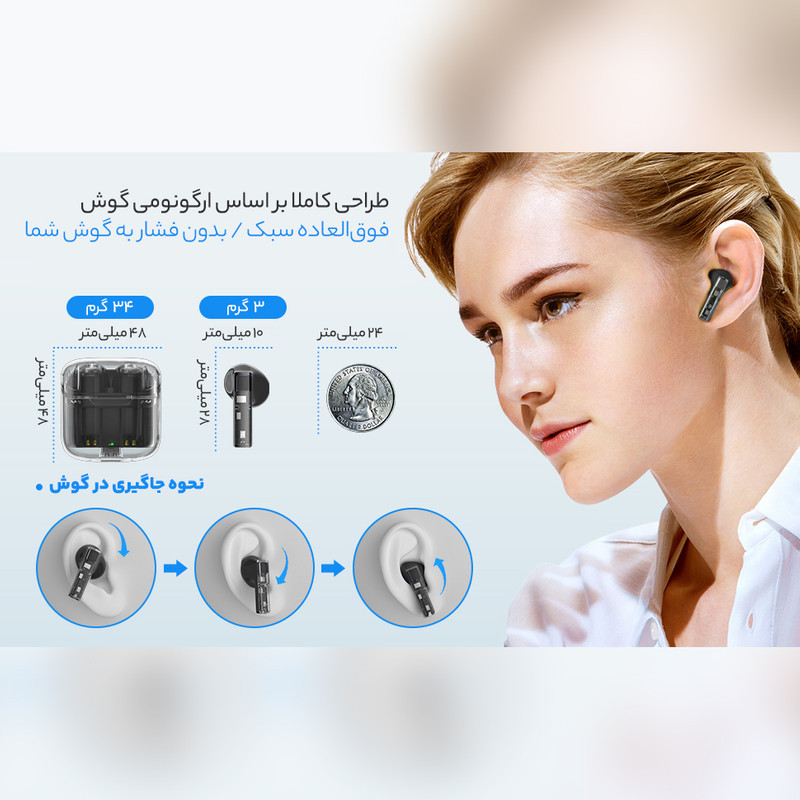 امتیاز 0 خریدار 0.0 گارانتی سرویس ویژه دیجی کالا: 7 روز تضمین بازگشت کالا رنگ بی رنگ, سفید سایر توضیحات اقلام همراه هدفون، هندزفری و هدست دفترچه راهنمای فارسی و انگلیسی - کابل شارژ Type-c قطر درایور 13 میلی‌متر محدوده عملکرد تا 18 متر متر مشاهده ویژگی‌های محصول توجه ارسال محصولات 5 تا 7 روز کاری. روزهای کاری ارسال شنبه تا چهارشنبه ارسال فوری نداریم. عدم توجه به این متن مسئولیتش با مشتری است. قیمت‌های سایت به‌ روز میباشد با خیال راحت خرید کنید. فقط قبل خرید استعلام موجودی بگیرید ارسال 5 تا 7 روز کاری. 09365373933 مشاهده راهنما امکان بازگشت کالا در گروه‌های موبایل، هندزفری، پاوربانک، ساعت هوشمند و سایر محصولات شرکتی، تنها در صورتی با عنوان «انصراف از خرید» قابل پذیرش است که پلمب و بسته‌بندی اصلی کالا (شامل شیرینگ) به‌طور کامل باز نشده باشد. در مواردی مانند مغایرت رنگ یا اشتباه در ارسال کالا نیز، کالا فقط در صورت باز نشدن قابل مرجوعی خواهد بود. در صورت باز شدن بسته‌بندی، امکان بازگشت کالا تحت هیچ شرایطی وجود ندارد.