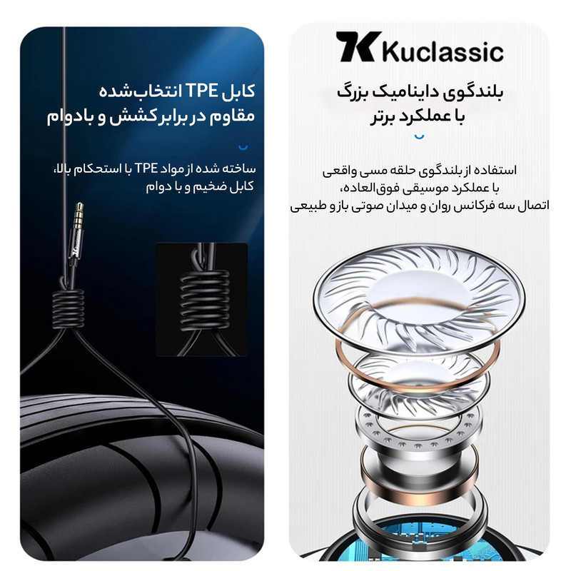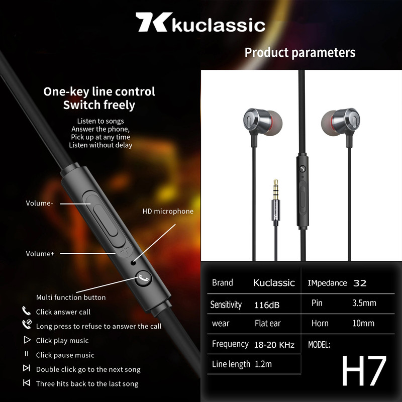 هندزفری کوکلاسیک مدل H7 برای استفاده روزمره یک گزینه بسیار مناسب میباشد. وزن این هندزفری سبک است و تنها 12 گرم است. طراحی مناسب آن باعث شده است تا در گوش قرار بگیرد و در استفاده طولانی مدت برای گوشهای شما خسته کننده نباشد. ساختار مقاوم و ظریف آن در کنار کیفیت ساخت مناسب، حس اطمینان از دوام و کارایی را به کاربر القا میکند. در بخش صدا، هندزفریH7 با درایورهای 10 میلیمتری خود صدایی شفاف و واضح تولید میکند. پاسخ فرکانسی 18 تا 20000 هرتز به شما امکان میدهد جزئیات صدای موسیقی و مکالمه را بشنوید. باس قدرتمند و صدای زیر شفاف، این هندزفری را به گزینهای ایدهآل برای کاربران عمومی و علاقهمندان به موسیقی تبدیل کرده است. نسبت سیگنال به نویز 116 دسیبل تضمین میکند که حتی در محیطهای شلوغ، صدا با کیفیت بالا و وضوح مناسب پخش شود. یکی از ویژگیهای خاص این مدل، وجود کلید مدیریت میزان صدا روی کابل است که به شما اجازه میدهد بدون نیاز به لمس دستگاه، به سادگی حجم صدا را تنظیم کنید. اتصال این هندزفری از طریق جک استاندارد 3.5 میلیمتری انجام میشود که با اکثر دستگاهها سازگاری دارد.