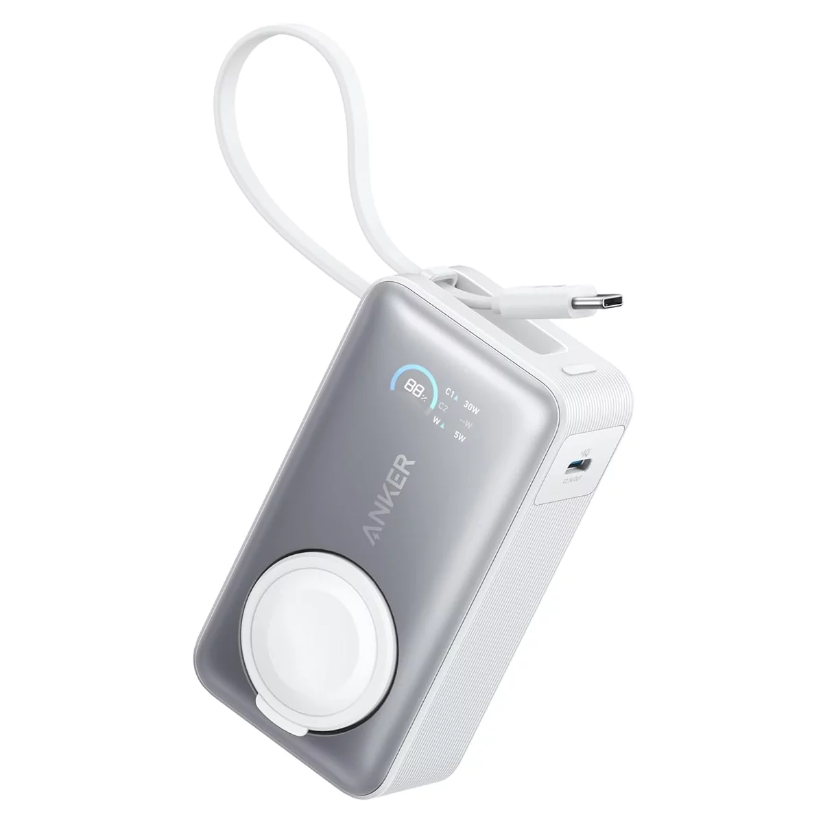 شارژ سریع ۳۰ وات USB-C + شارژ بی‌سیم ۵ وات مخصوص اپل واچ / شارژ کامل پاوربانک در ۱.۵ ساعت با ورودی ۳۰ وات