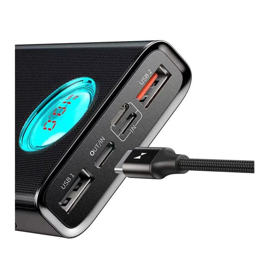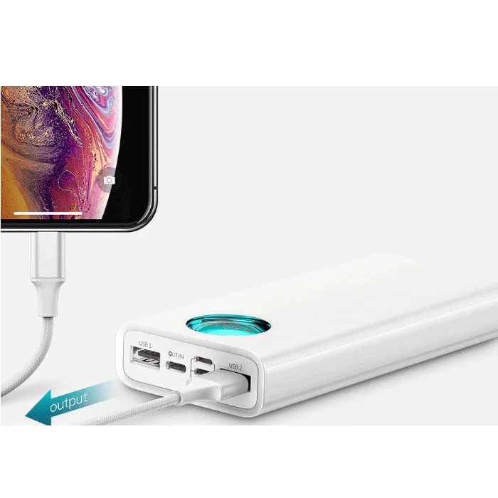 پاوربانک باسئوس BS-20KP203 دارای چهار پورت خروجی است. این ویژگی به شما امکان میدهد تا به طور همزمان چندین دستگاه را شارژ کنید. شدت جریان و ولتاژهای خروجی (۱.۵A, ۲.۱A, ۳.۰A و ۵.۰V) شارژ بهینه را تضمین میکند.