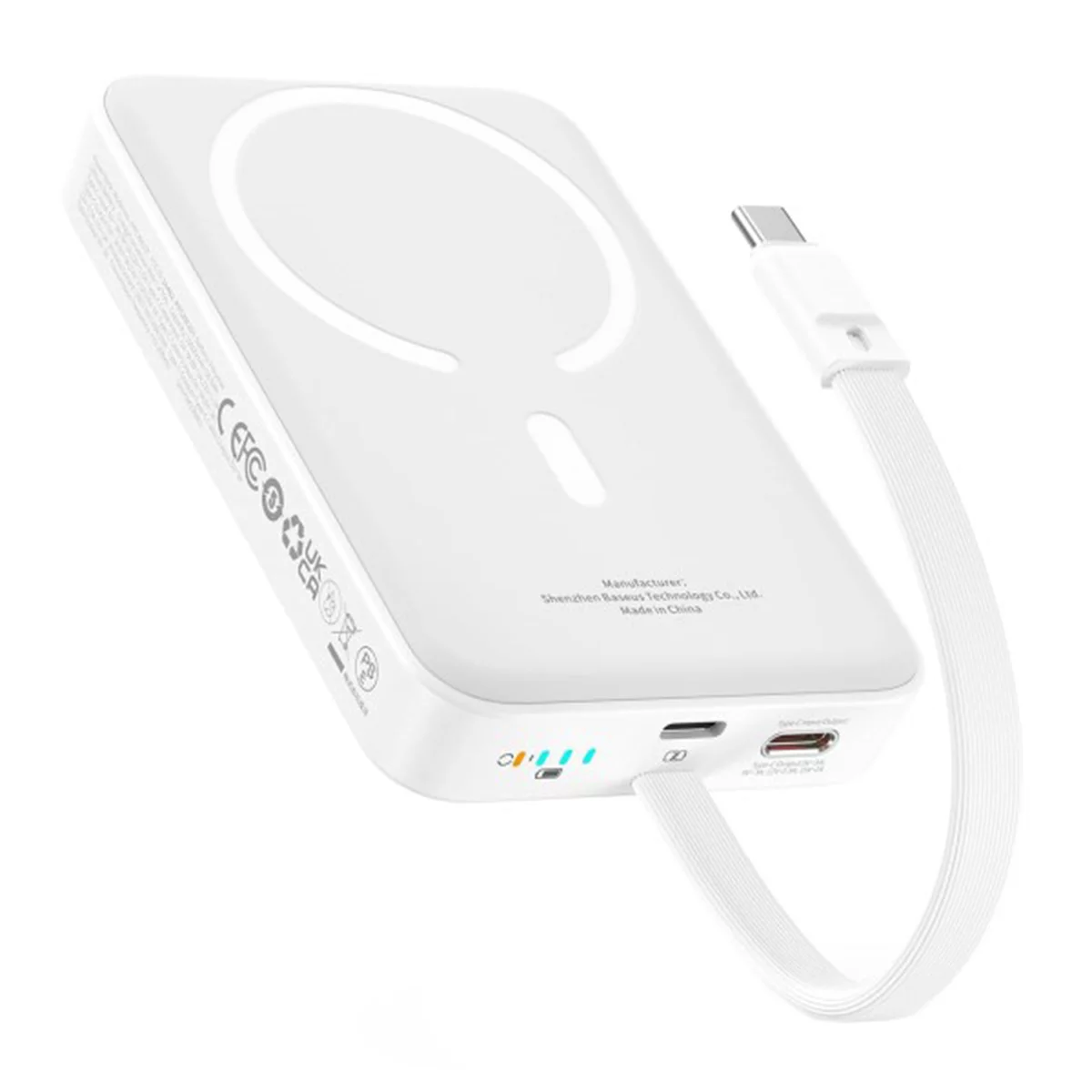 پاوربانک باسئوس مدل Magnetic Mini Wireless P1002210B223 ظرفیت 10000 میلی آمپر ساعت توان 30 وات