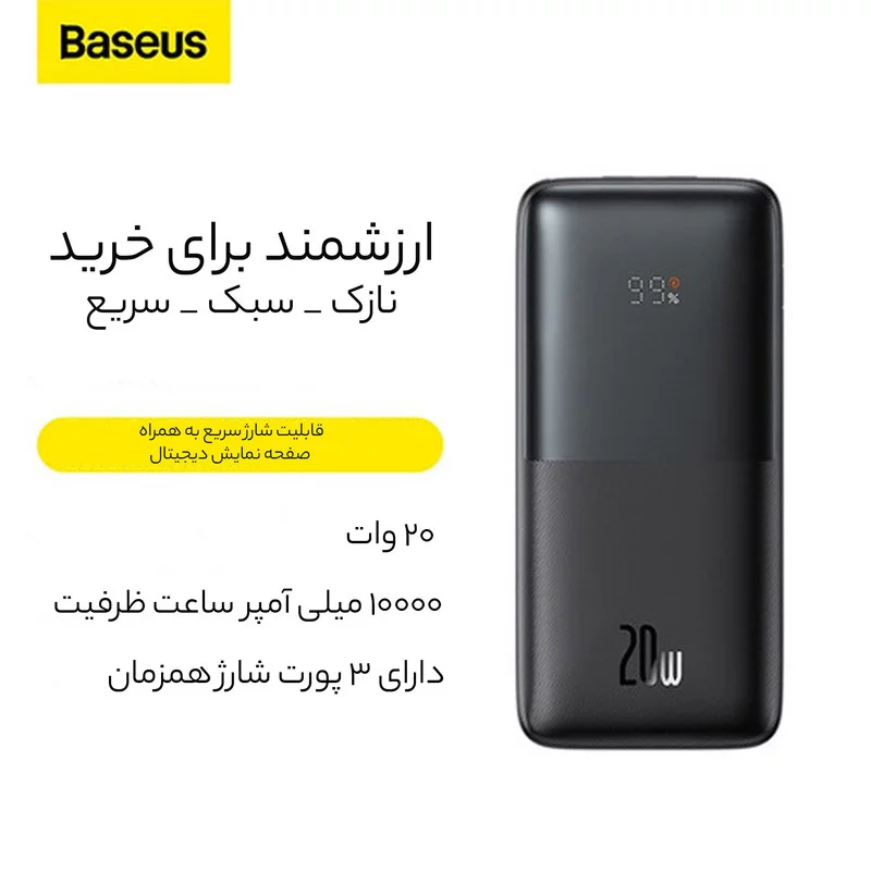 پاوربانک باسئوس مدل PPBD2-1020 ظرفیت 10000 میلی‌آمپر ساعت