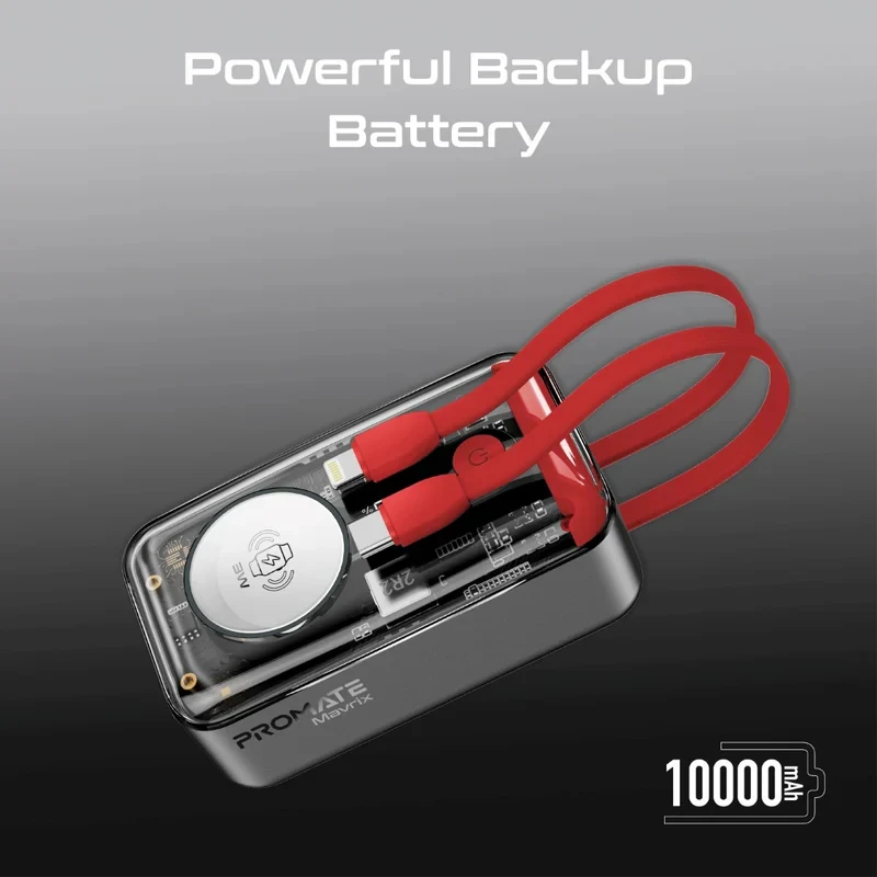 این پاوربانک با قابلیت تنظیم خودکار ولتاژ، شارژ ایمن و بهینه را برای دستگاههای متصل فراهم میکند. پاوربانک پرومیت مدل MAVRIX ظرفیت 10000 میلی آمپرساعت، انتخابی ایدهآل برای کسانی است که به دنبال یک پاوربانک با ظرفیت مناسب، قابلیت شارژ بیسیم و کابلی داخلی، و عملکرد سریع هستند.