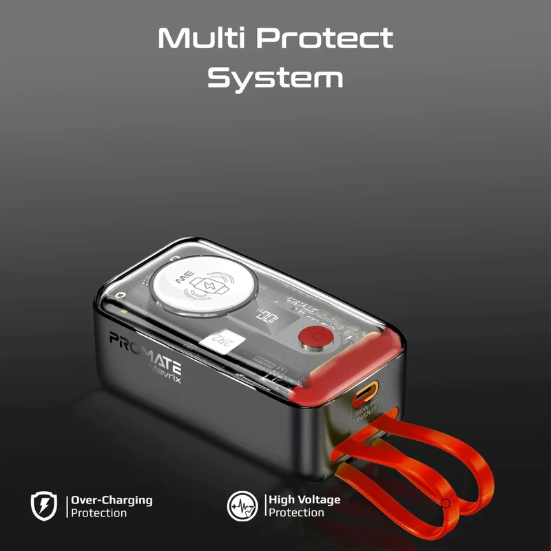 پاوربانک پرومیت MAVRIX توان خروجی کلی ۳۵ وات را ارائه میدهد. این توان بالا و پشتیبانی از استانداردهای PD و PPS، به شما امکان میدهد دستگاههای خود را با سرعت بالایی شارژ کنید. شدت جریان و ولتاژهای خروجی متنوع، شارژ بهینه را تضمین میکند.