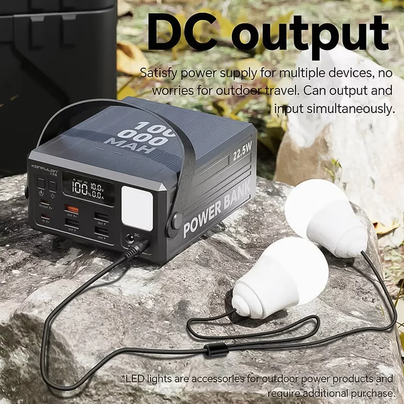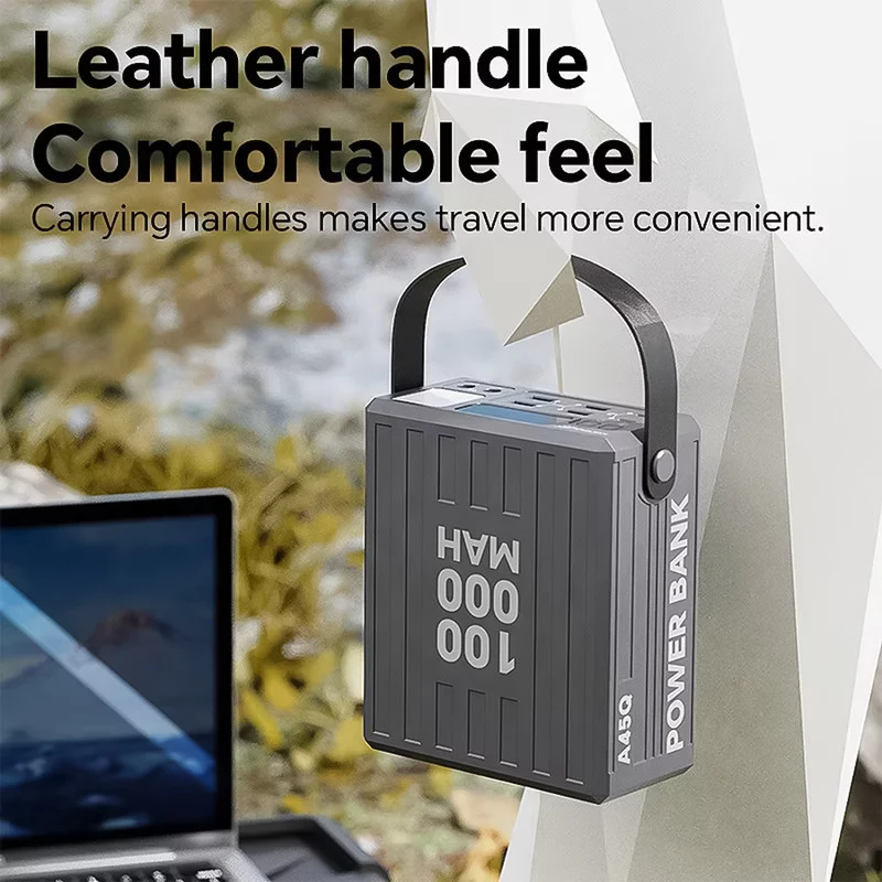 پاوربانک هوشمند برند کانفلون مدل A45Q با ظرفیت 100 هزار میلی آمپر یک انتخاب عالی برای استفاده در سفر، کمپینگ، گردشگری، و حتی استفاده روزمره است. این پاوربانک دارای یک دسته برای حمل آسان است.