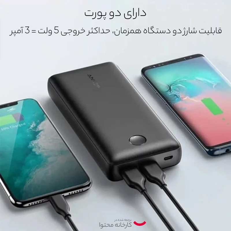 برند: انکر (Anker) رنگ: مشکی تعداد خروجی شارژ: دو کابل همراه: کابل Micro USB محدوده ظرفیت باتری: 10001 تا 20000 میلی آمپر ساعت قابلیتهای شارژ: پشتیبانی از فناوری Quick Charge | تقسیم شارژ دینامیک وزن: 345 گرم شدت جریان خروجی: 1.5 تا 3 آمپر ولتاژ خروجی: 5، 9 و 12 ولت پورت ورودی: دارای یک درگاه MicroUSB جهت شارژ پاوربانک پورت خروجی: دو درگاه خروجی USB-A و قابلیت شارژ دو دستگاه به صورت همزمان تکنولوژی: Power iQ برای تشخیص جریان مورد نیاز دستگاه نشانگر LED: دارد ظرفیت: 20 هزار میلیآمپرساعت جنس بدنه: پلاستیک جریان ورودی: 2.22 و 2 آمپر ولتاژ ورودی: 5 و 9 ولت جریان خروجی: 1.5 آمپر , 2.0 آمپر , 3.0 آمپر توان خروجی: 18 وات