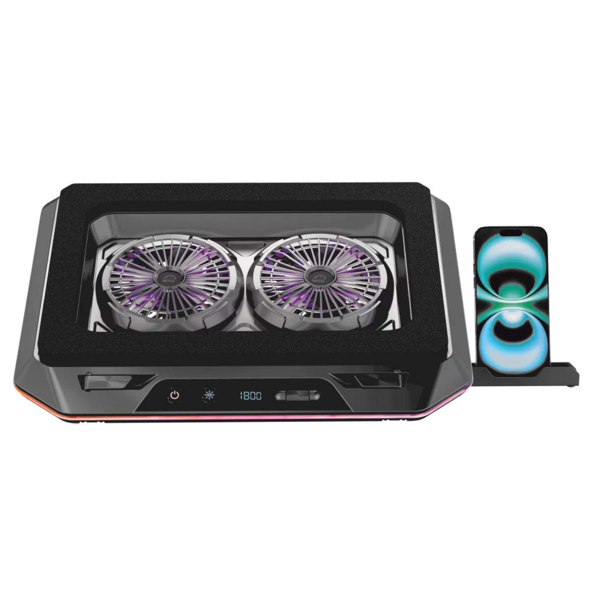 دارای صفحه نمایش LCD برای کنترل سرعت فن و نور / دارای کلید پاور / اقلام همراه: کابل تایپ C، پایه تلفن همراه / دارای پایه تلفن همراه و روشنایی 10 حالته RGB