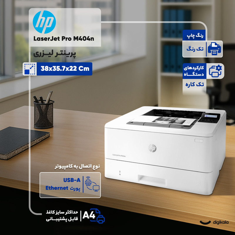 زمان مورد نیازز برای چاپ اولین برگ 6.1 ثانیه / دارای نمایشگر دو خطی LCD / پردازنده 1200 مگاهرتزی / زبان پرینت HP PCL 6 / قابلیت اتصال به تلفن همراه با استفاده از HP Smart App; HP ePrint; Apple AirPrint; Google Cloud Print; Mobile Apps; Mopria Certified / سازگاری با سیستمعاملهای Windows 11; Windows 10; Windows 8; Windows 7; Windows Client OS; Android; Mobile OS; macOS 10.12 Sierra; macOS 10.14 Mojave