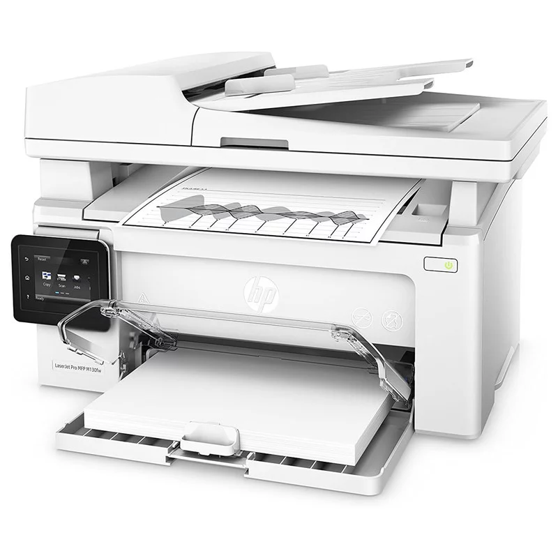 پرینتر «MFP M130fw» ساخت شرکت «اچ پی» (hp) پرینتری چندکاره است که علاوه‌بر پرینت، قابلیت‌های کپی، اسکن و فکس را هم در اختیار کاربر می‌گذارد. پرینترهای چندکاره به دلیل اینکه قابلیت‌های متنوع را در قالب دستگاهی واحد به کاربر ارائه می‌دهند، در فضا و هزینه‌های کاربر صرفه‌جویی می‌کنند. تصور کنید که بخواهید تک‌تک این دستگاه‌ها را به‌صورت مجزا خریداری کنید. علاوه‌بر هزینه‌های بالا، فراهم‌کردن فضای کافی برای این‌همه دستگاه، چالش بزرگی است. اگرچه پرینترهای چندکاره عملکردهای اسکن، کپی و فکس را به‌صورت عالی انجام نمی‌دهند، بسیاری از کاربران هم به این قابلیت‌ها در حد عالی نیاز نداشته و همان کیفیت موجود در پرینترهای چندکاره برایشان کافی است. پرینتر فوق، با ظرفیت کاغذ ورودی 150 برگ، هم برای مصارف خانگی مناسب است و هم می‌توان از آن در محیط‌های کاری کوچک استفاده کرد. البته انتظارات خود را در همین حد نگه دارید و اگر حجم کاری شما سنگین‌تر است، بهتر است به سراغ مدل‌های با توان کاری بالاتر بروید. صفحه‌نمایشی که روی این دستگاه تعبیه شده از نوع LCD رنگی و لمسی بوده و کنترل دستگاه را بسیار آسان ساخته است.