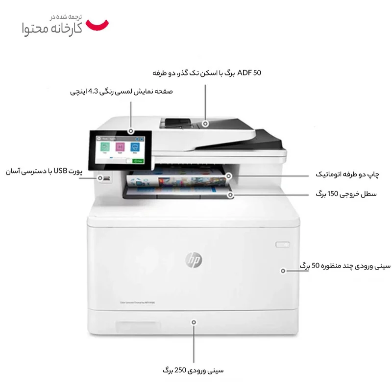 پرینتر LaserJet Pro MFP M282nw ساخت شرکت HP پرینتری رنگی لیزری و چندکاره است که علاوه بر پرینت، کپی و اسکن را انجام میدهد؛ درنتیجه برای محیطهای اداری و تجاری کوچک بسیار مناسب است. این چاپگر به نسبت محصولات رقیب، قابلیتهای متعددی دارد و با توجه به قیمت مناسبش، کالایی با ارزش محسوب میشود. صفحهنمایش2.7 LCD اینچی تعبیهشده در قسمت جلویی، علاوهبر کنترل عملکردهای دستگاه قابلیتهای دیگری مانند صدها App را در زمینهی محتوای قابلچاپ ارائه میدهد. درگاه USB که زیر صفحه نمایش قرار گرفته است به کاربر اجازه میدهد تا بدون استفاده از کامپیوتر بهصورت مستقیم، اسناد خود را چاپ یا اسکن کرده و در فلشمموری ذخیره کند؛ همچنین قابلیتهای Wireless دستگاه، پرینت و اسکن را با استفاده از سرویسهای «Cloud» ممکن میسازد. قابلیت «Direct Wireless» هم چاپ اسناد را از طریق تلفنهای هوشمند و تبلت بدون نیاز به رایانه امکان پذیر میکند. پرینتر قادر است ماهانه تا 40.000 برگ را به چاپ برساند؛ سختافزار دستگاه با 256 مگابایت Memory در عرض 10.6 ثانیه، اولین برگه را به چاپ میرساند و قادر است تا 21 صفحه را بهصورت رنگی یا سیاهوسفید در دقیقه با وضوح 600 dpi چاپ کند؛ قسمت کپی در این مدل میتواند تا 21 برگه را بهصورت سیاهوسفید یا رنگی کپی کند؛ همچنین میتوانید اسناد خود را برای کپی، بین 25 تا 400 درصد کوچک یا بزرگ کنید. تونرهای رنگی پرینتر تا 1250 صفحه و تونر سیاهوسفید تا 1350 صفحه ظرفیت چاپ دارند. بزرگترین اندازهی چاپ در این مدل برابر با A4 است. قابلیت تغذیهی اتوماتیک اسناد ADF میتواند تا 50 برگ را در خود نگهداشته و وارد دستگاه کند.