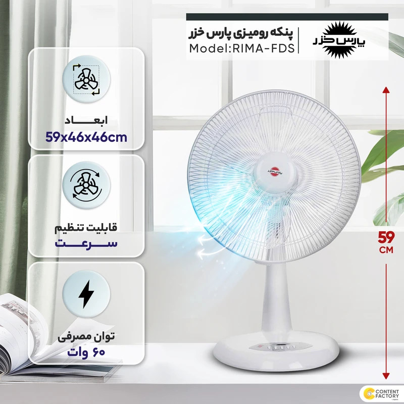 موتور مجهز به فیوز حرارتی، کنترل از راه دور، قابلیت تنظیم زاویه عمودی وزش باد