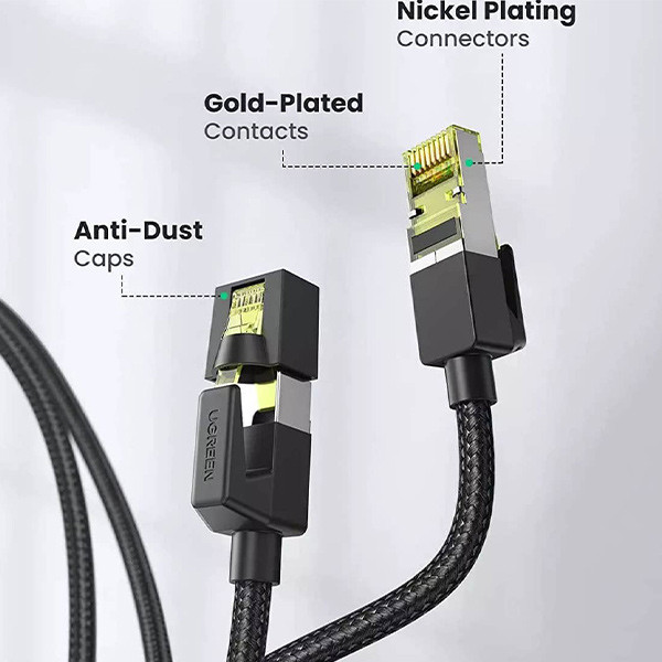 نوع کابل: CAT7, مدل: 80423-NW150, طول: 2 متر, قطر سیم: 30AWG, سرعت شبکه: 10Gbps, پهنای باند: 600 مگاهرتز, نوع روکش: بافته شده