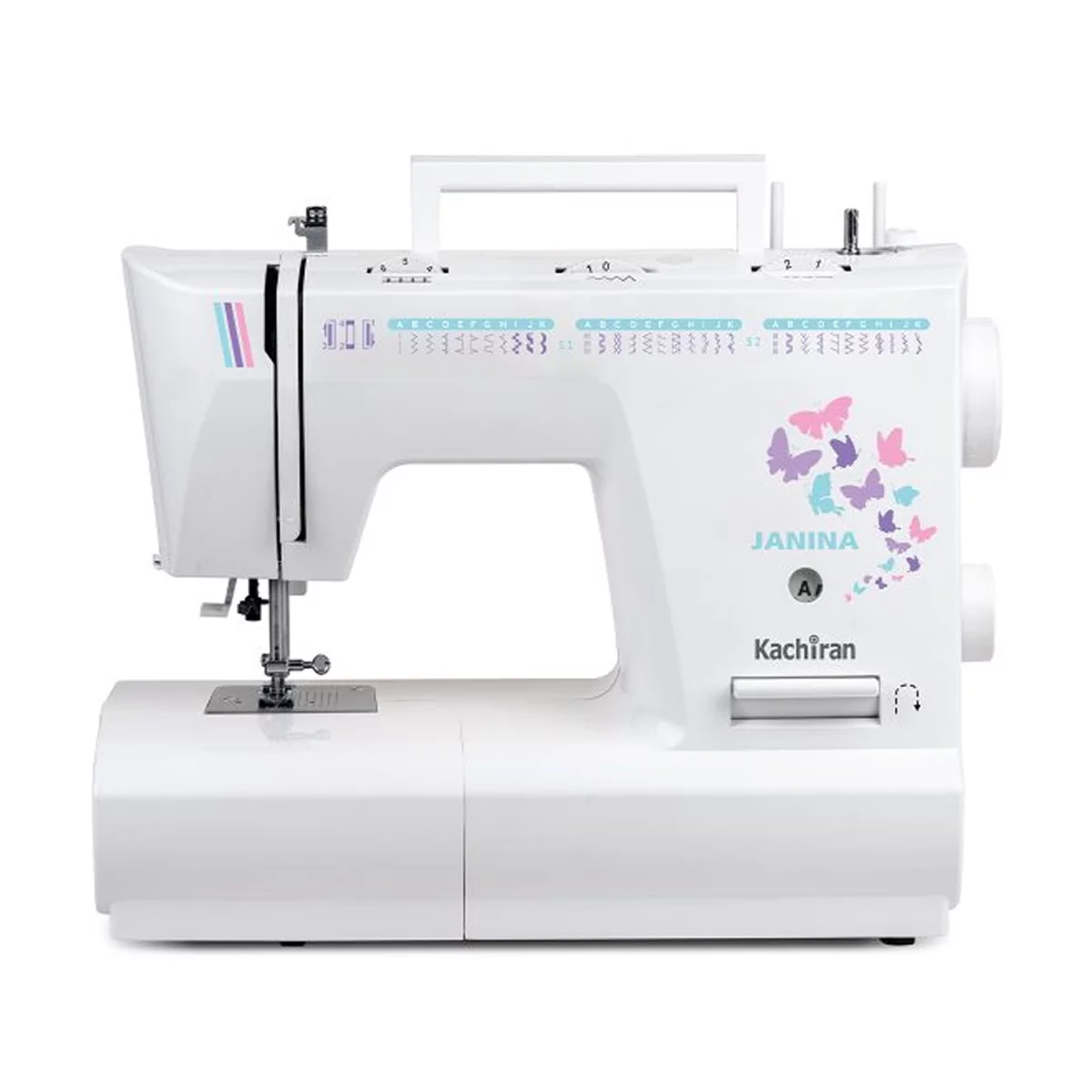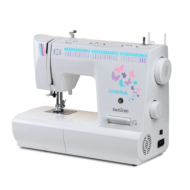 انتخاب دوخت سوزن وسط و سوزن کنار، امکان تنظیم طول دوخت، قابلیت گردوزی تا قطر120 میلی متر، سیستم نخ قطع کن خودکار