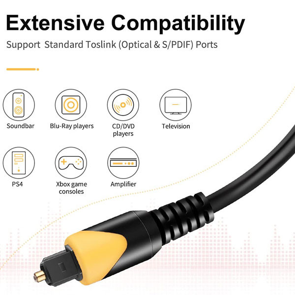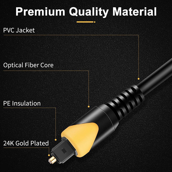 جنس کابل : پلاستیک — دارای کانکتورهایی با روکش فلز طلا برای کاهش نویز — دارای درپوش های پلاستیکی برای جلوگیری از ورود گرد و غبار — مناسب برای انتقال صدا — سازگار با پخش کنندههای خانگی ، تلویزیونهای LED ، انواع سینمای خانگی و دیگر دستگاه های مجهز به درگاه Optical