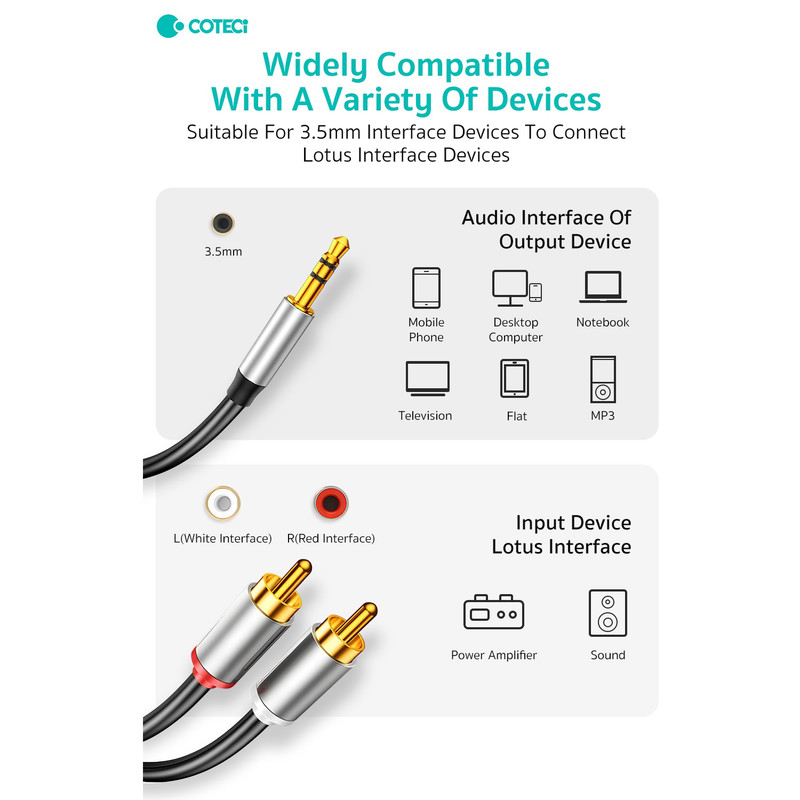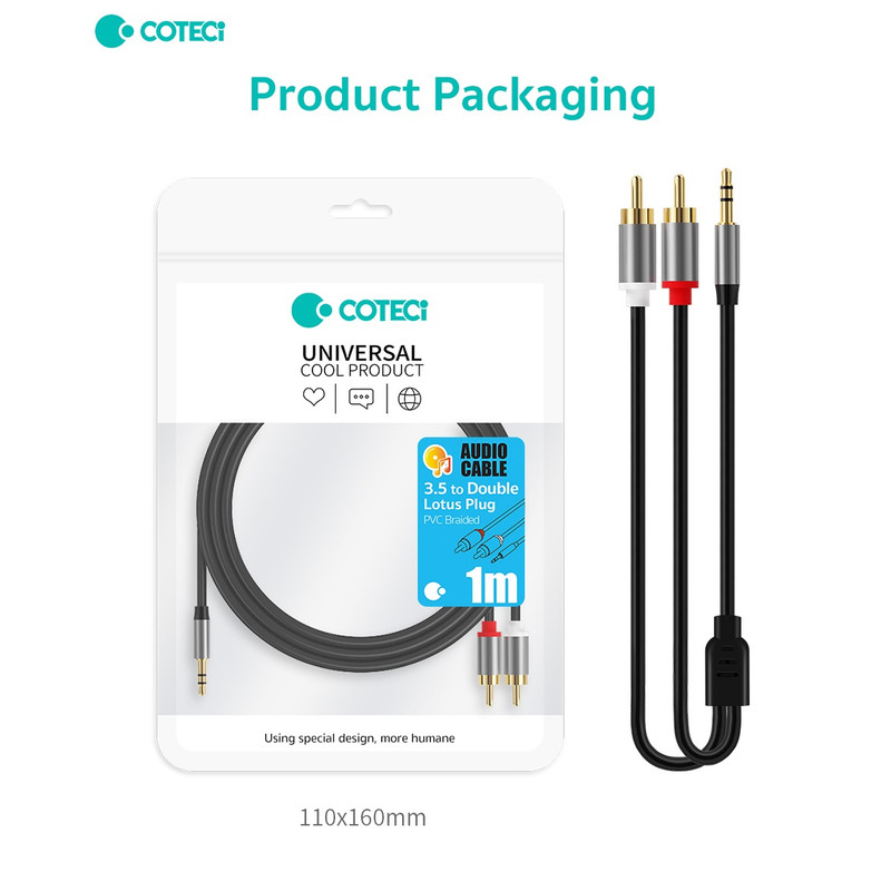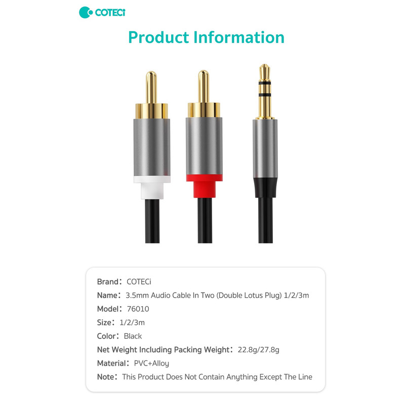 کابل تبدیل جک 3.5 میلی متری به دو RCA کوتتسی مدل 76010 طول 2 متر