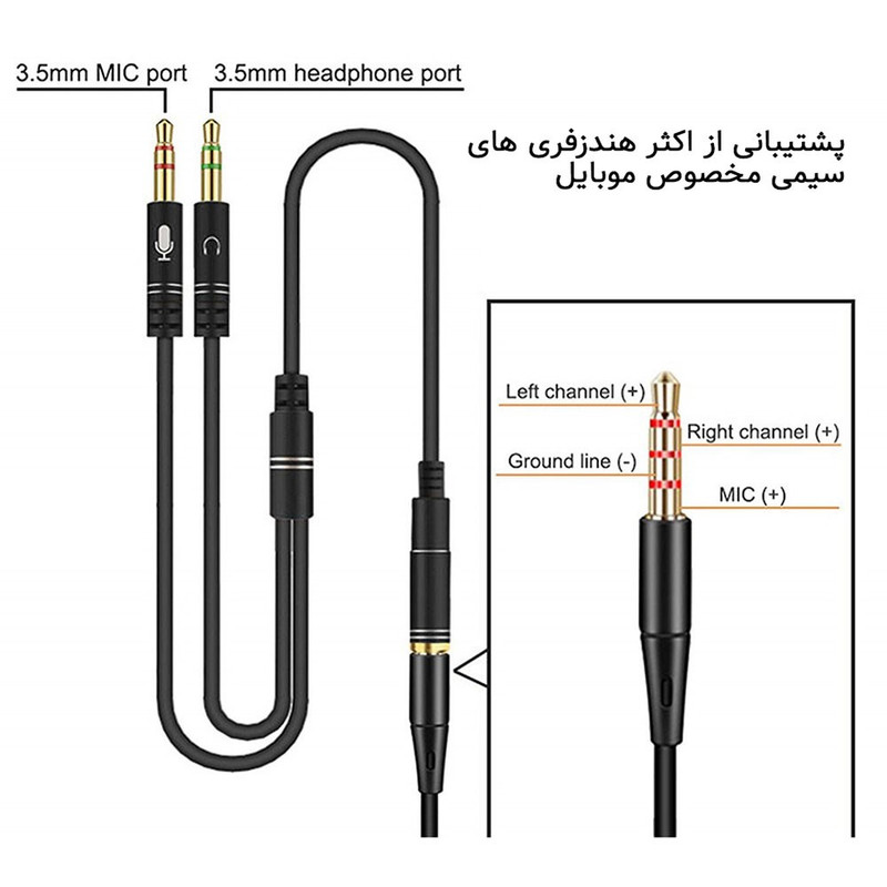 کابل تبدیل 1 به 2 جک 3.5 میلی متری مدل 116029034به طول 0.3 متر