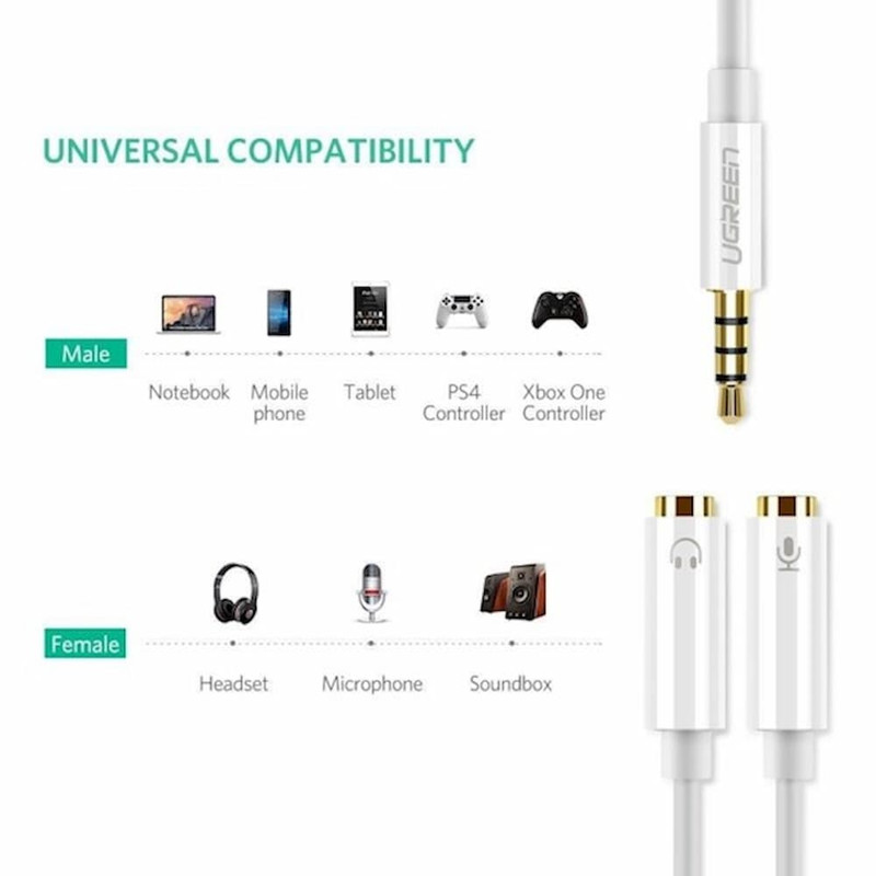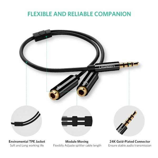 کابل تبدیل 1 به 2 صدا 3.5 میلی متری یوگرین مدل AV141-10789