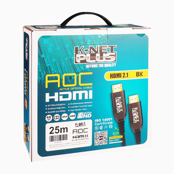 کابل ۲٫۱ HDMI فیبر نوری کی نت پلاس مدل KP-CHAOC21250 طول ۲۵ متری