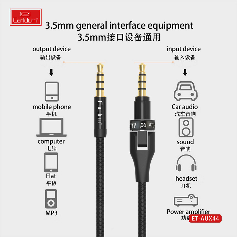 – سری 90 درجه قابل تنظیم – برای انتقال سیگنال های صوتی و همچنین برای اتصال گوشی های هوشمند، تبلت ها، پخش کننده های صوتی و سایر دستگاه های پخش صدا طراحی شده است. – مناسب برای دستگاه هایی با مینی جک 3.5 میلی متری، برای اتصال به بلندگوهای قابل حمل، خانه یا خودرو استفاده می شود.